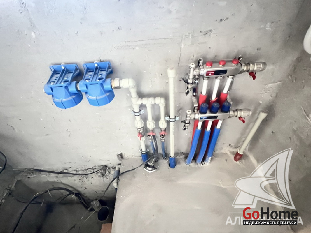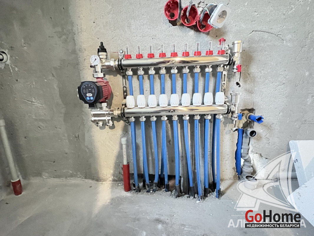 Коммуникации: отопление - газовый котел, газ - централизованный (в доме), водоснабжение - скважина, электричество - централизованное, канализация - автономная.