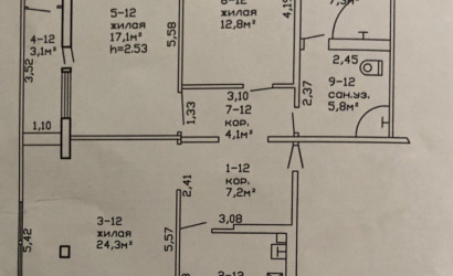 3-комнатная, 54.2/41.3/5.7 м2, Этаж 4 из 4, 1963 г.