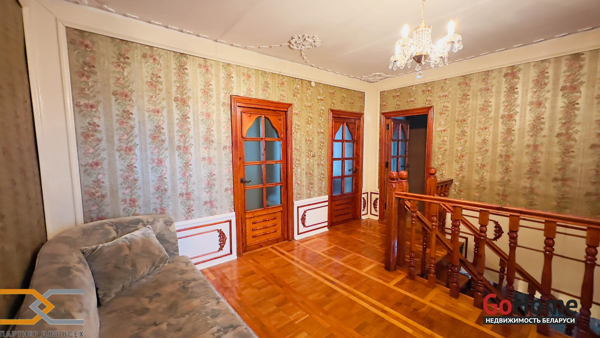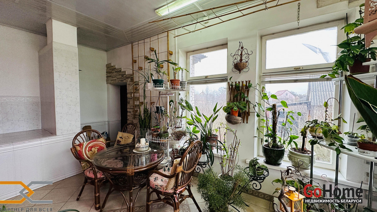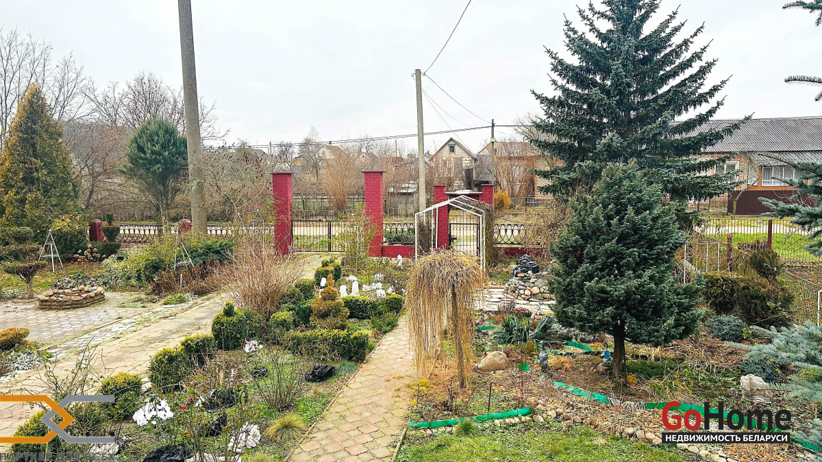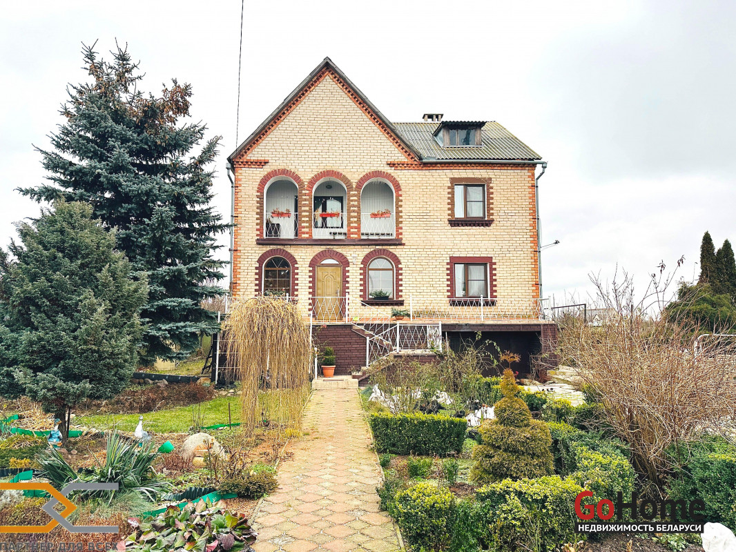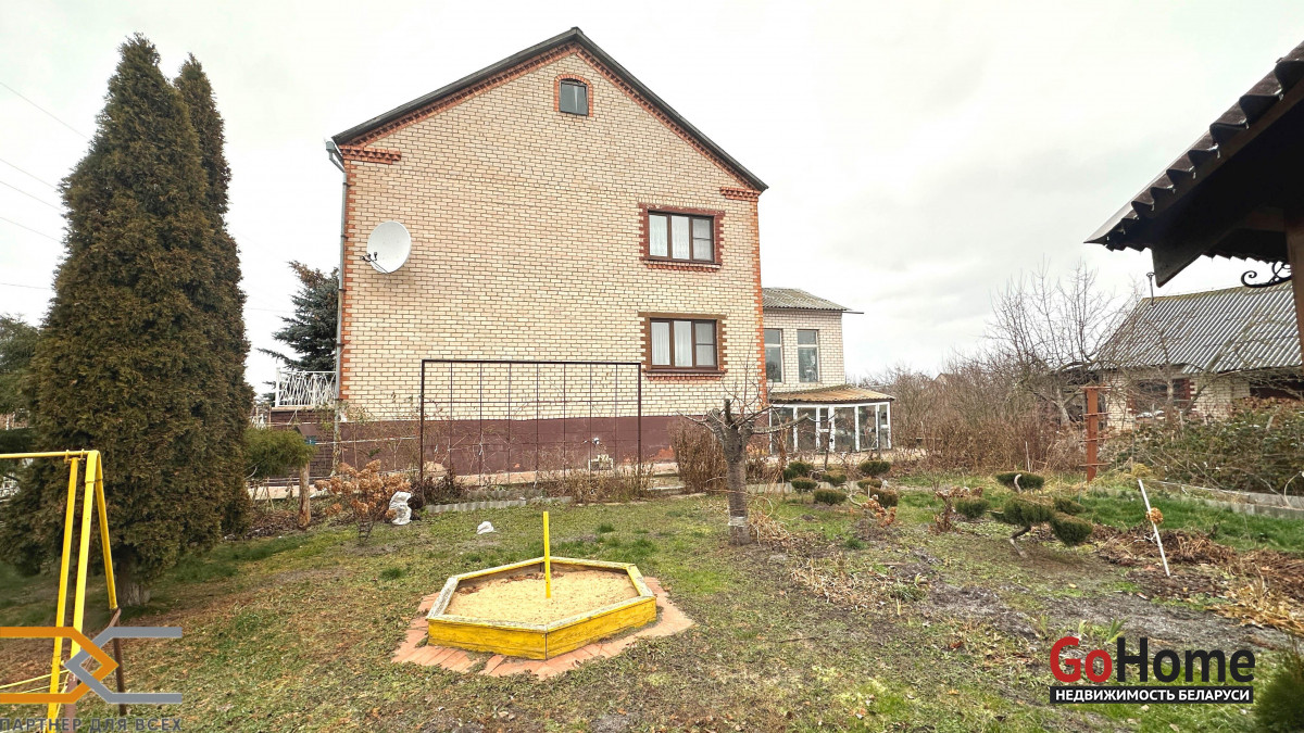 Двухуровневый блочный дом обложенный кирпичом, 1996 года постройки. Общая площадь дома 175.3 м2, 87.3 м2 составила жилая. Дом полностью готов для проживания: в доме расположились 5 жилых просторных комнат, кухня, 2 санузла, зимний сад с русской печью, прихожая с камином, холл. Материал крыши: шифер. В доме все центральные коммуникации: электричество, отопление, водоснабжение, канализация. Площадь участка составляет 24.81 соток. Растут плодовые деревья: яблони, груши, вишни, кусты: ежевика, малина, смородина, крыжовник. Участок с ландшафтным дизайном. Во дворе летний дом, 3 теплицы, сарай. Под домом расположились гараж, хозяйственные отделы, которые пригодятся для хранения инвентаря, складирования дров и других нужд. В шаговой доступности расположены детский садик и школа, а также продуктовые магазины.