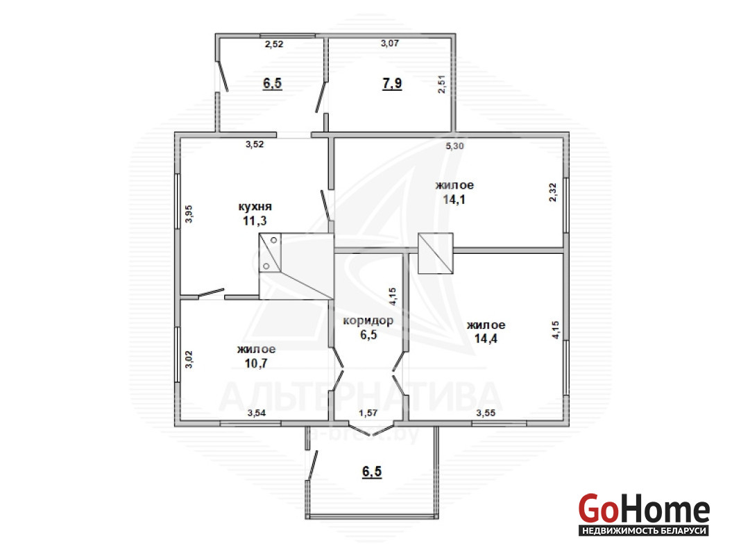 Жилой дом в Малоритском р-не. 1 этаж. Общ.СНБ - 77,9 кв.м, общ.- 57,0 кв.м, жил.- 39,2 кв.м, кух.- 11,3 кв.м. 3 комнаты, высота потолка - 2,70 м.