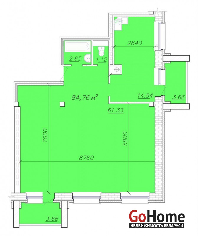 Общая площадь: 85 м2