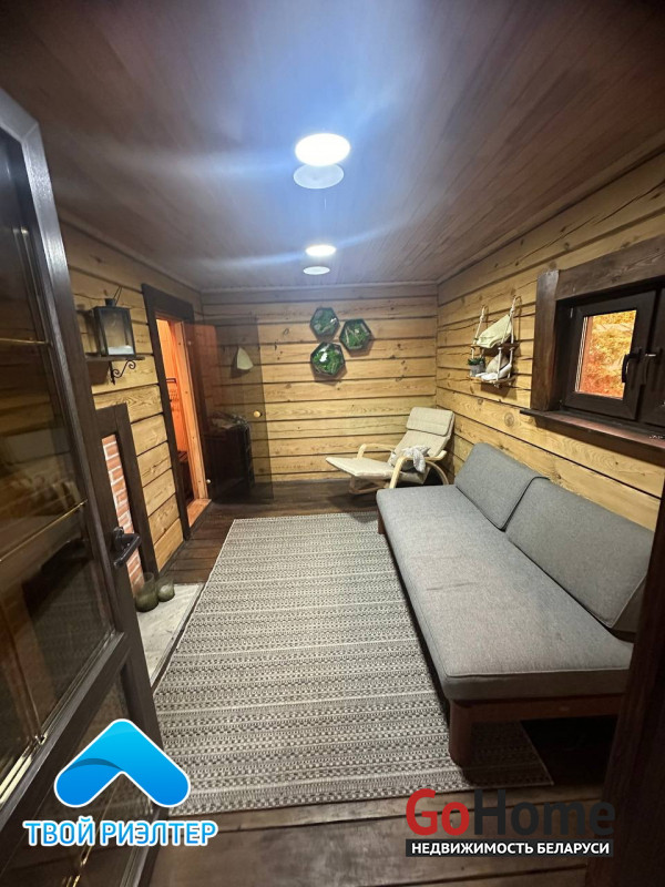 Красивый обустроенный участок с ландшафтным дизайном с множеством хвойных насаждений, разделенный на две зоны: зона отдыха и огород. Баня, построенная по индивидуальному проекту. Навес с зоной барбекю с русской печью и казаном-мангалом, двое въездных ворот на участок. Перед домом обустроенная стоянка для машин. К дому отличные подъездные пути - асфальтированная дорога.