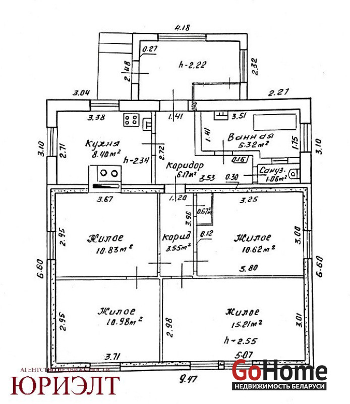 Дом состоит из 4-х жилых комнат, кухни, раздельного с/у, светлой веранды и кладовой.