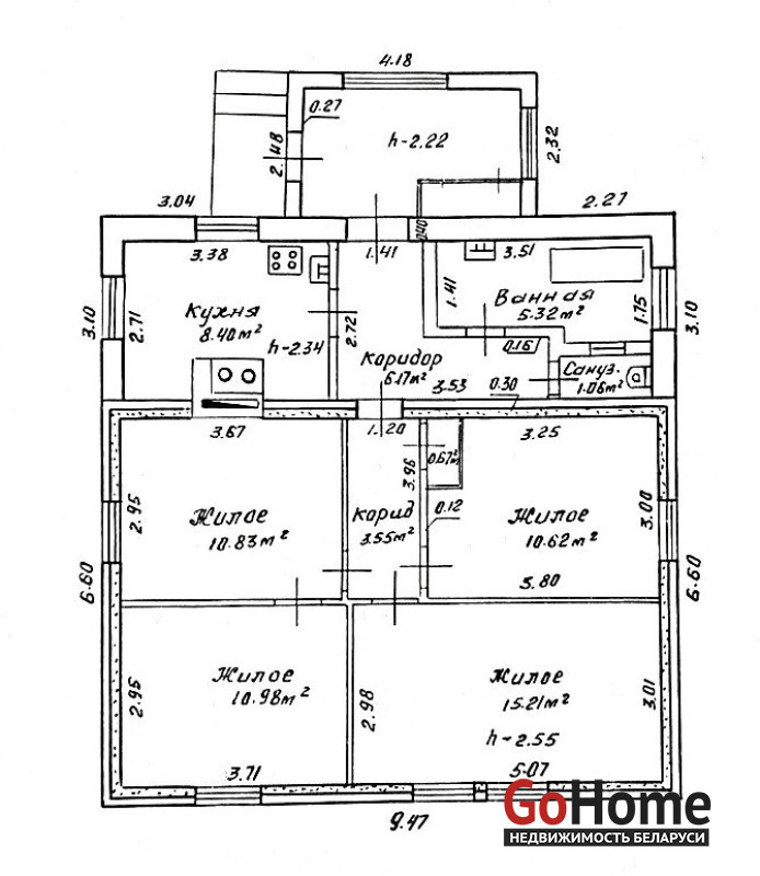 Все коммуникации – центральные, газ – баллон, есть возможность подключить индукционную плиту.