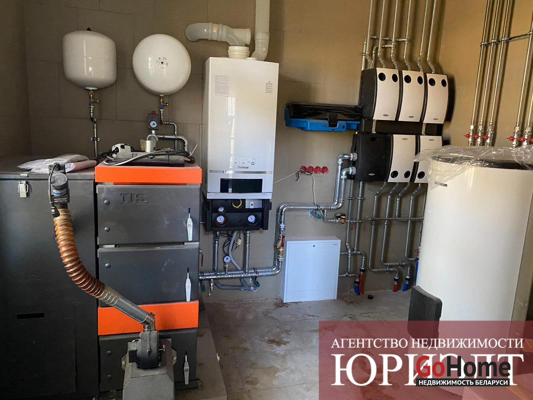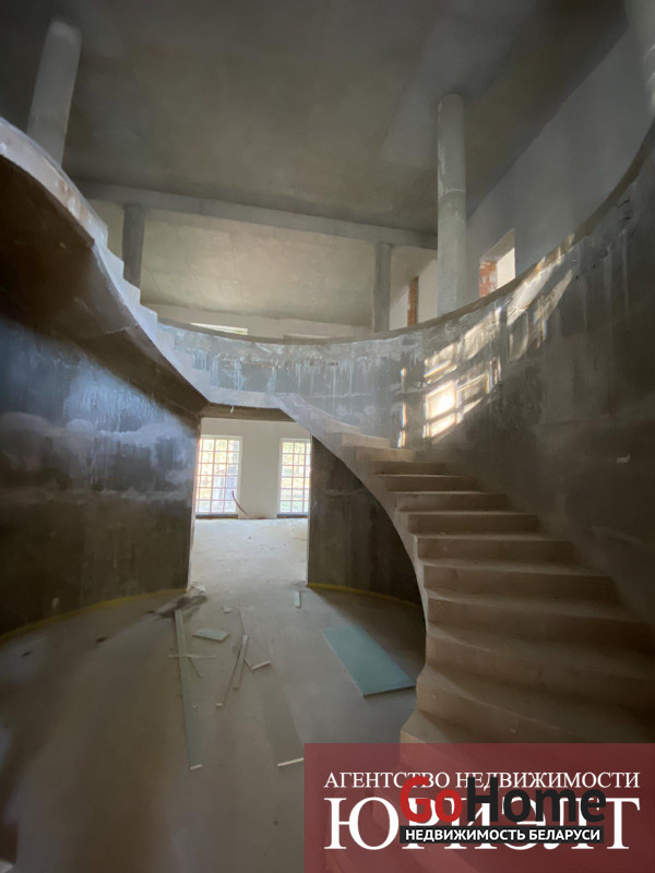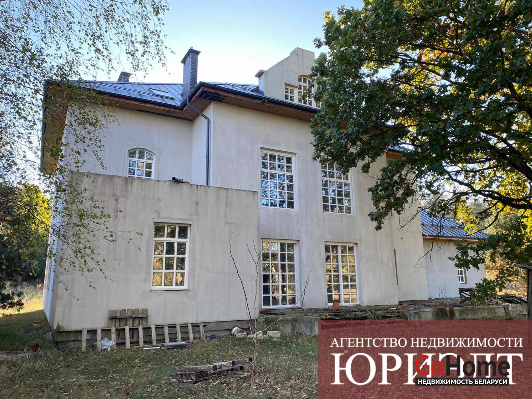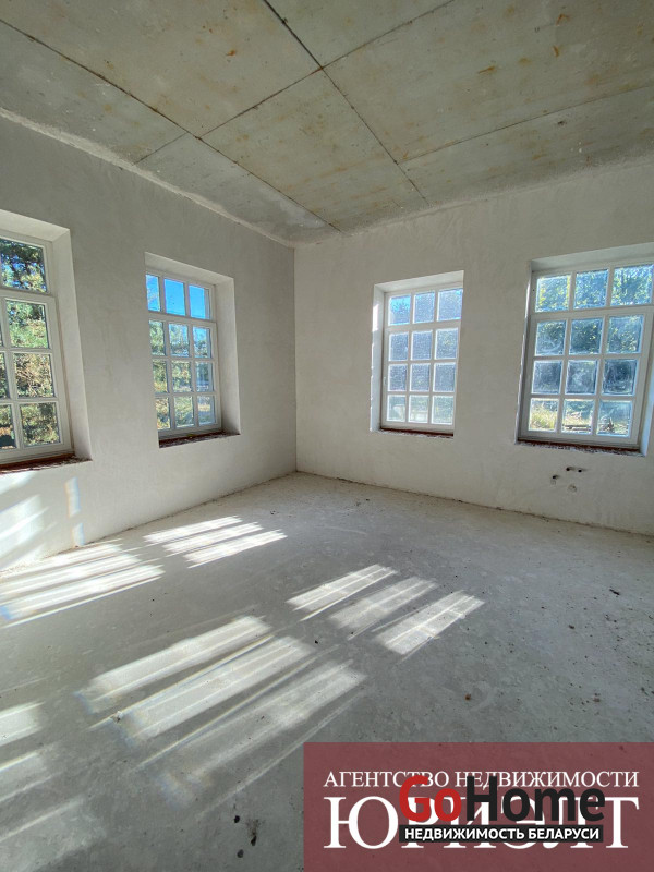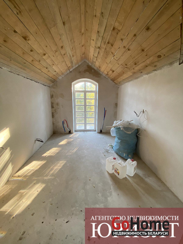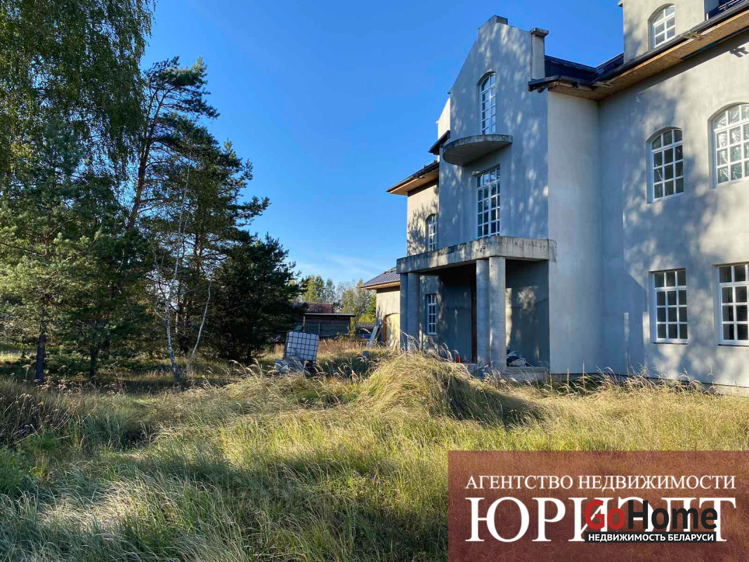 Продается жилой дом 2024 г.п., под чистовую отделку в Брестском районе, д. Подлесье Радваничское. Дом расположен на земельном участке 60 соток, общая площадь дома 674 кв.м. Стены дома возведены из импортного австрийского кирпича паротерм, перекрытия между этажами монолитные, проведена и разведена сантехника, электричество, установлен импортный твердотопливный и газовый котел, бойлер на 200 л воды. Дом спланирован в стиле классицизм с элементами лепнины из полиуретана которая была привезена из России и Европы. Дом накрыт фальцевой импортной кровлей, окна деревянные стеклопакеты из лиственницы с фацетом были сделаны по индивидуальному заказу. По плану на первом этаже: основной каминный зал, банкетный зал, кухня-столовая, несколько гардеробных, постирочная, кладовая, топочная, лифт. На второй этаж ведет красивая монолитная винтовая лестница, на данном этаже расположены: 3 спальни, несколько с/у, гардеробные, терраса и балкон. На третьем этаже 5 жилых комнат которые можно оборудовать под спорт зал, кабинет, кинотеатр. Весь дом внутри оштукатурен, разведено отопление, установлены инсталляции, мансардный этаж утеплен и подшит, все готово под чистовую отделку. Дом находится в живописном месте, на краю деревни, на участке растут вековые дубы, сосны и ели, дополнительно высажено пару кедров. Участок по всему периметру огорожен забором. В доме есть большой отапливаемый гараж с автоматическими воротами на несколько авто. За домом есть большая терраса с выходом на задний живописный двор, выход на который из каминного зала. Большой и красивый дом для семьи.