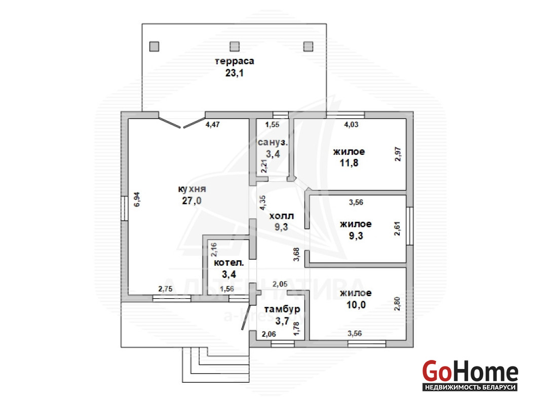 Жилой дом в Брестском р-не. 2023 г.п. 1 этаж. Общ.СНБ - 101,0 кв.м, общ. - 84,8 кв.м, жил. - 31,1 кв.м, кух. - 27 кв.м, 4 комнаты.