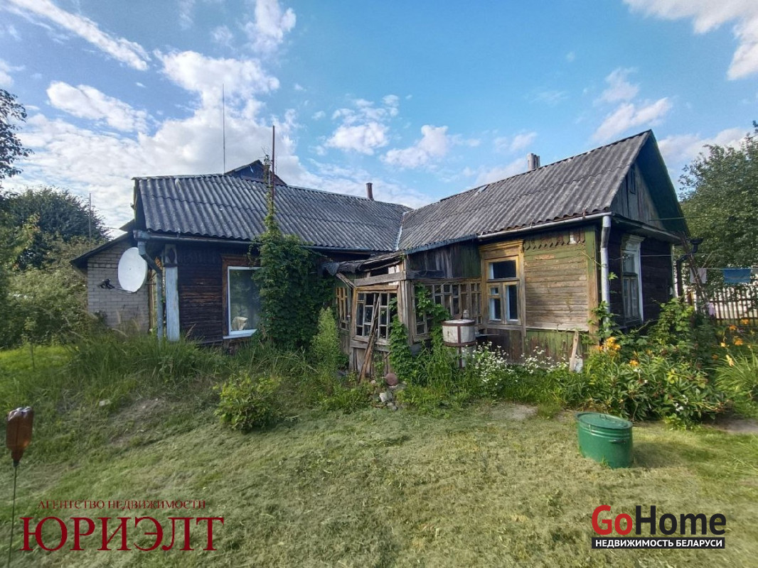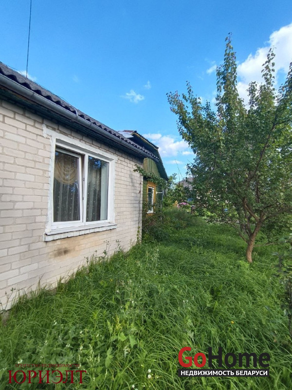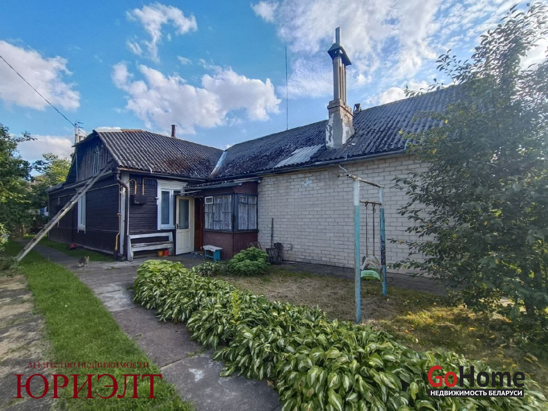 Дом на два входа, одна часть – блочная, обложена кирпичом, 1989 г. п., вторая часть – брус, крыша – шифер.