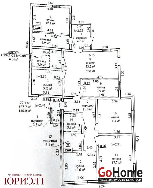Дом состоит из 6-ти жилых комнат, двух кухонь и двух с/у.