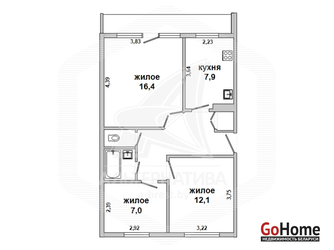 3-комнатная квартира, д. Еремичи, ул. Центральная, 1978 г.п., 1 / 3 панель, 60,7 / 57,4 / 35,5 / 7,9, санузел раздельный, лоджия, подвал, стеклопакеты (частично), деревянные межкомнатные двери, потолки - побелка и снежка (в кухне), полы - доска крашеная, ДСП и линолеум (в кухне), газовая колонка в кухне. Кухонный гарнитур. Квартира в жилом состоянии. Лот - 242665