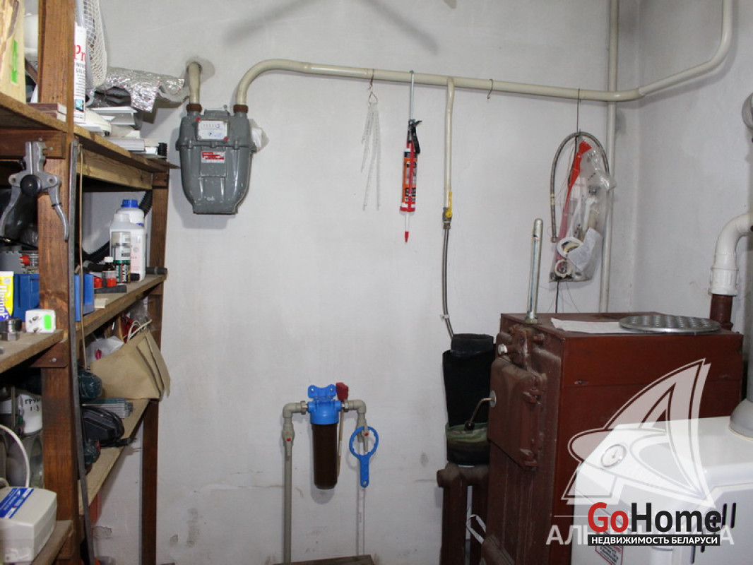Коммуникации: отопление - газовый котел и твердотопливный, газ - централизованный (в доме), водоснабжение - централизованный водопровод и скважина на участке, электричество - централизованное, канализация - автономная.