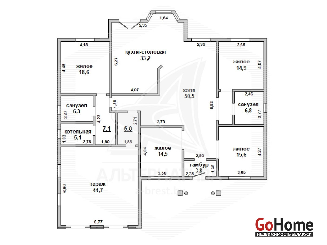 Жилой дом в Брестском р-не. 2011 г.п. 1 этаж. Общ.СНБ - 229,0 кв.м, общ.- 184,3 кв.м, жил.- 63,6 кв.м, кух.- 33,2 кв.м. 4 комнаты, высота потолка - 2,73 м.