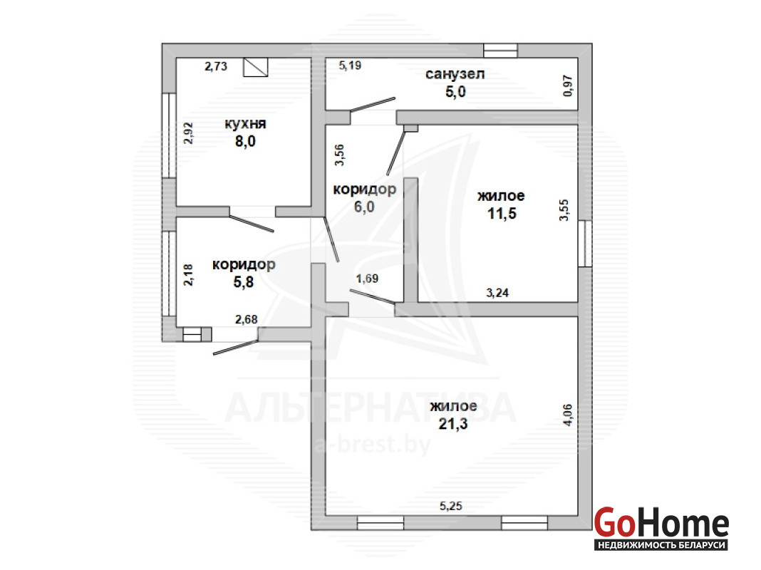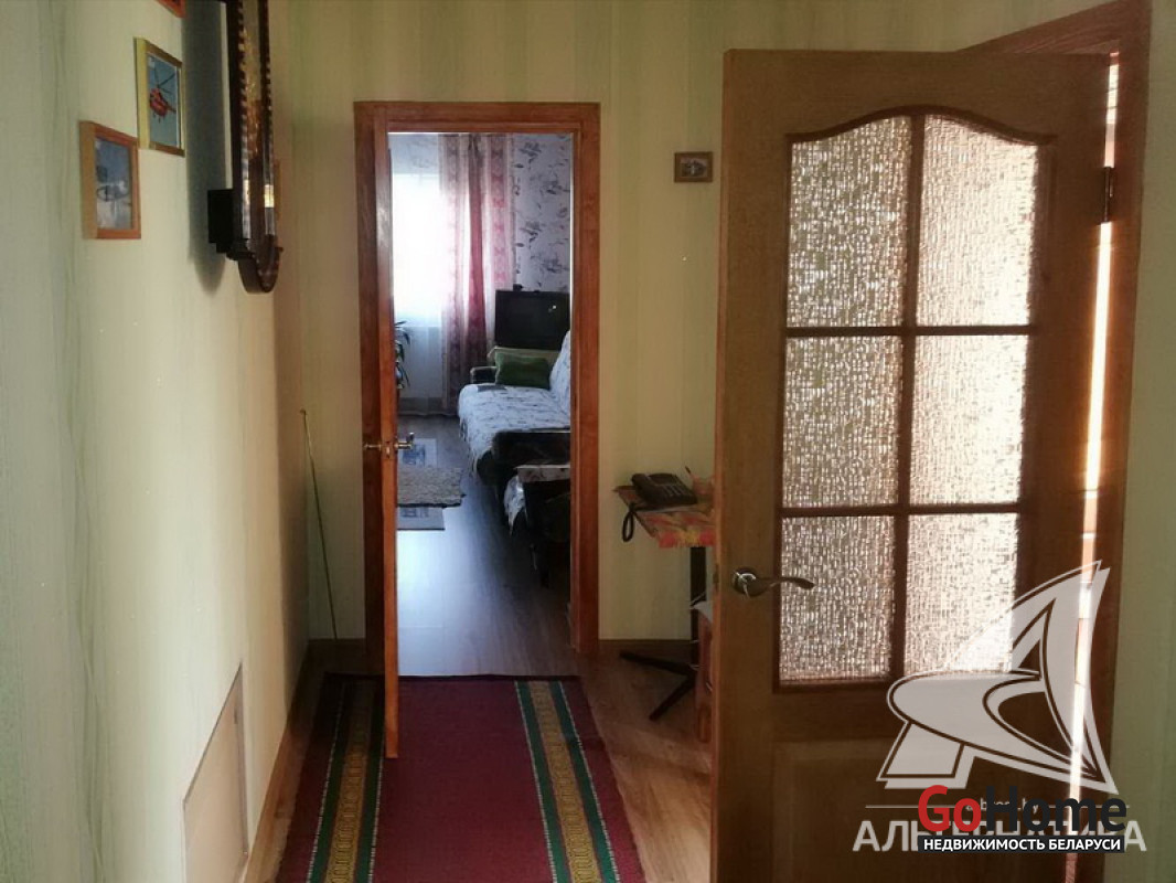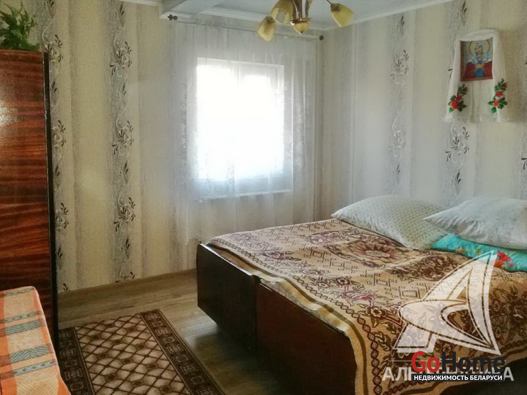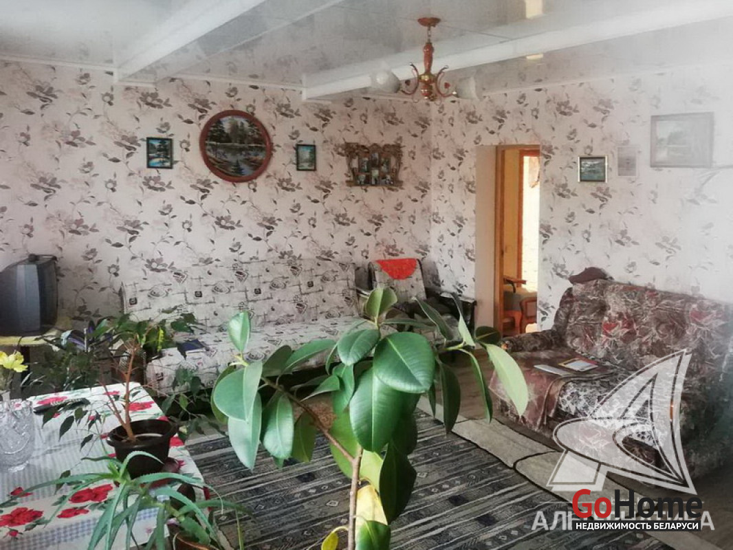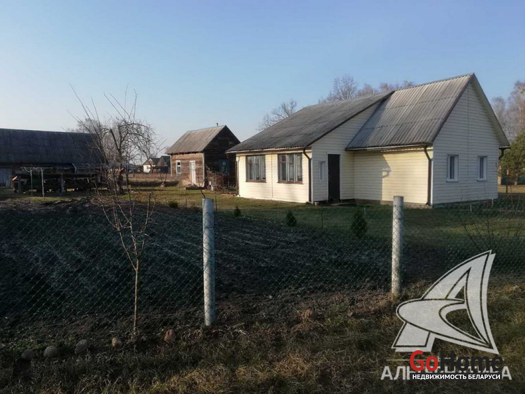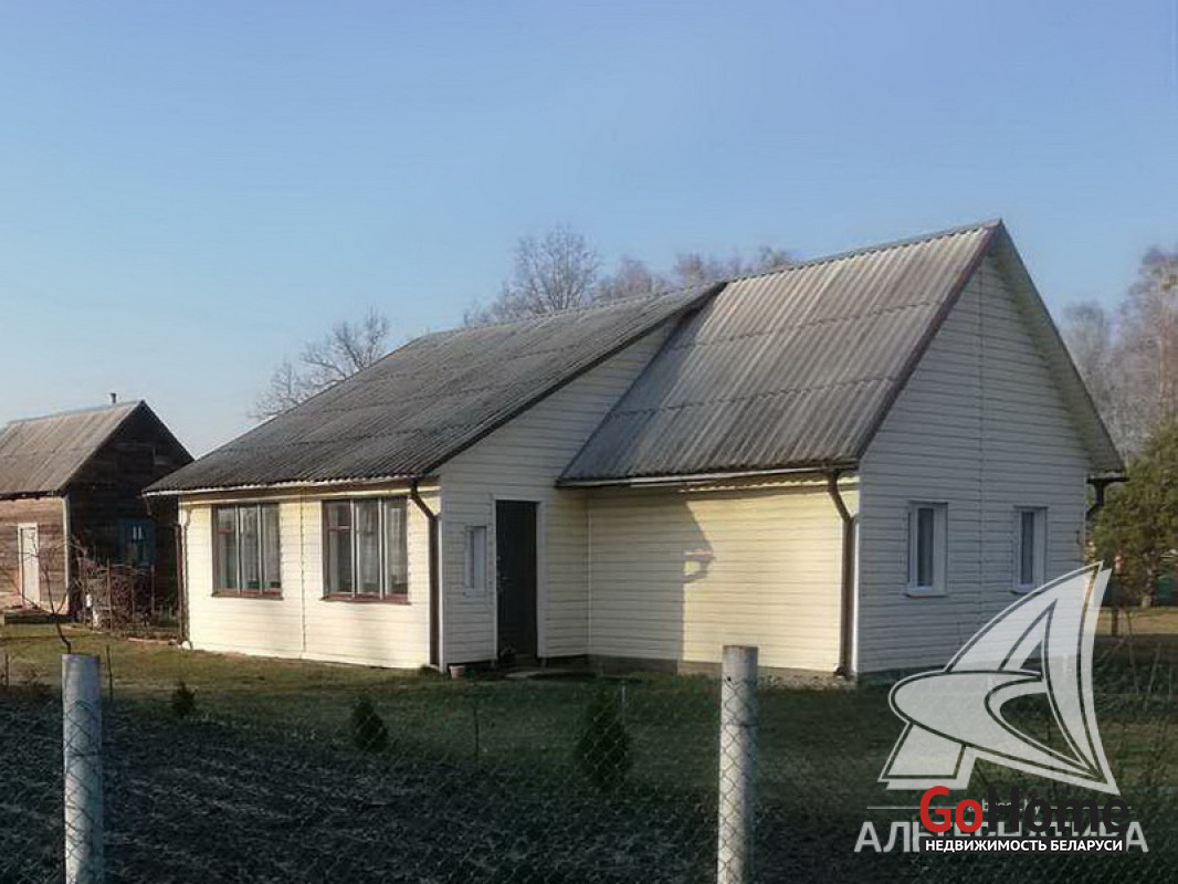 Жилой дом в Кобринском р-не. 1946 г.п. 1 этаж. Общ.СНБ - 57,6 кв.м, общ.- 57,6 кв.м, жил.- 32,8 кв.м, кух.- 8,0 кв.м. 2 комнаты, высота потолка - 2,44 м.