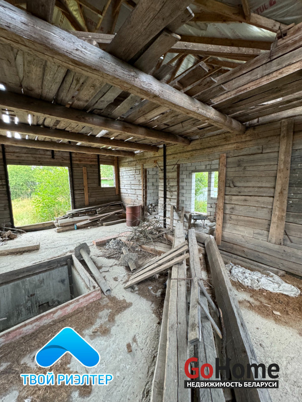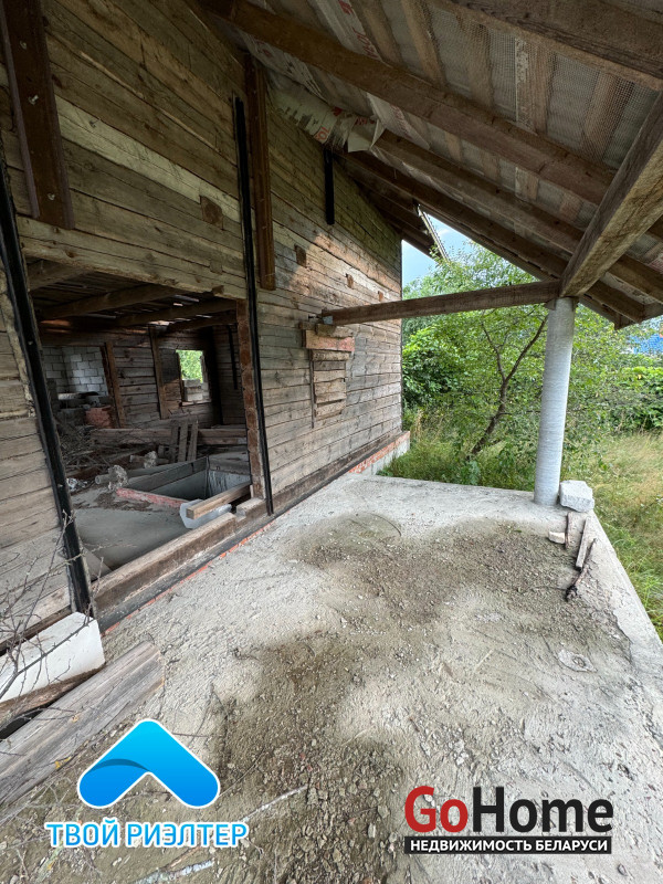 Продаётся одноэтажный бревенчатый садовый домик без отделки с блочной пристройкой, с большим погребом и большой мансардой, расположенный по адресу: Гомельский район, Улуковский сельсовет, СТ Берёзки - 1.