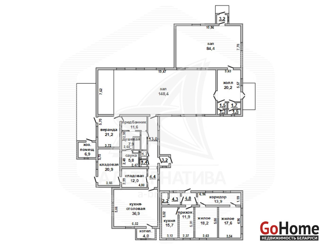 Агроусадьба в Малоритском р-не. 1960 г.п. 1 этаж. Общ.СНБ - 515,3 кв.м, общ.- 492,0 кв.м, жил.- 268,6 кв.м, кух.- 52,6 кв.м. 4 комнаты, высота потолка - 2,80 м.