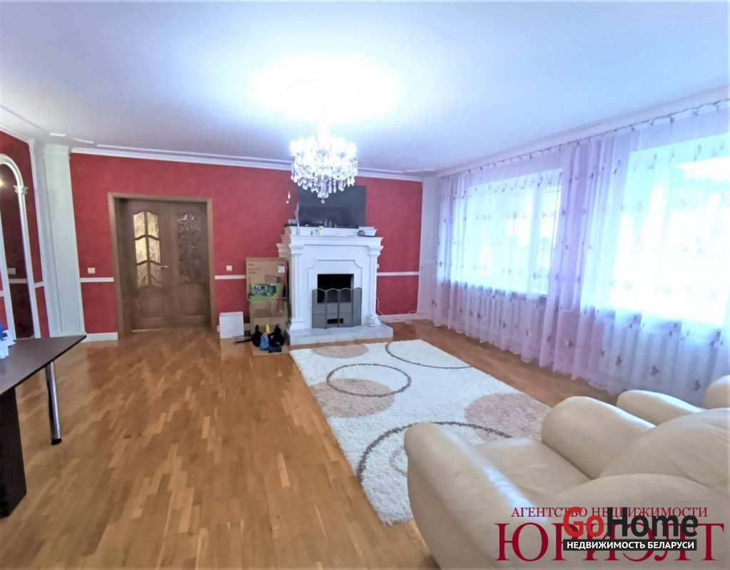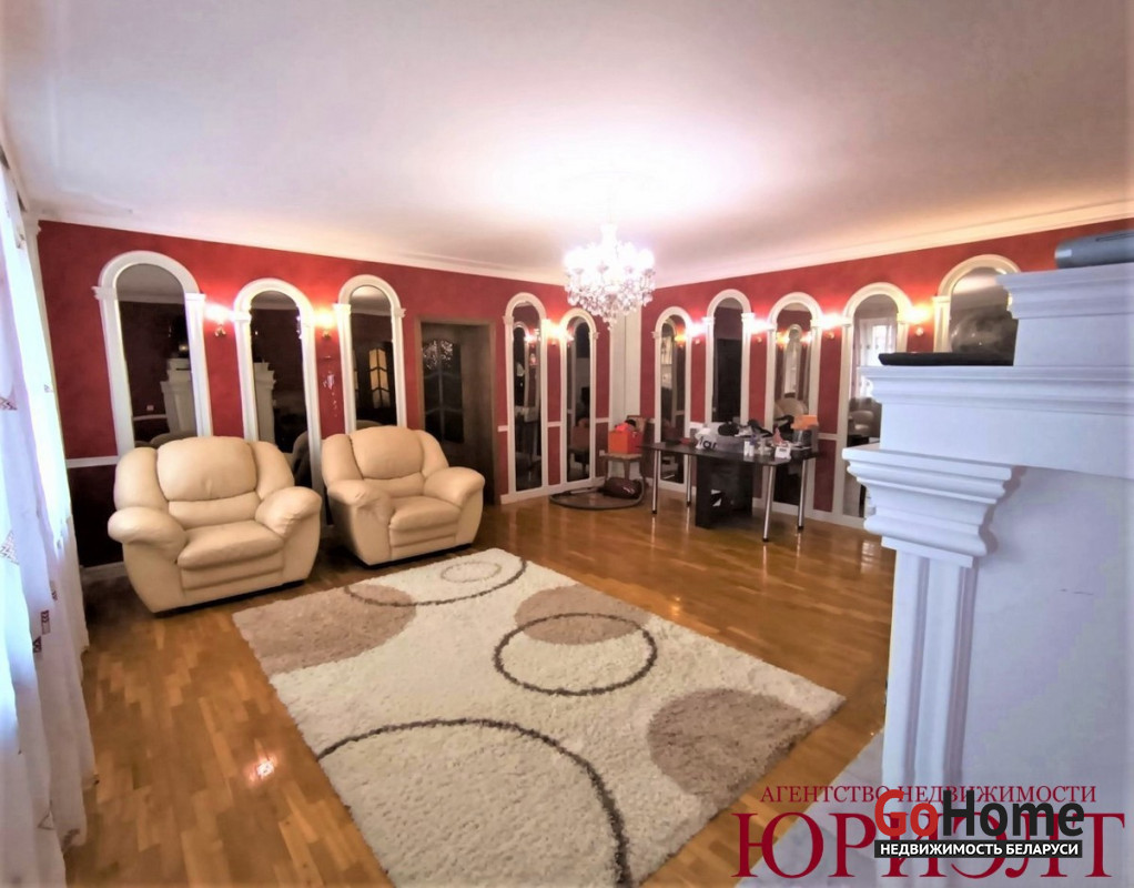 По всему дому уложен дубовый паркет, потолки лепнина, стены оклеены обоями, гостиная с отделанными стенами в виде зеркальных арок, имеется камин.