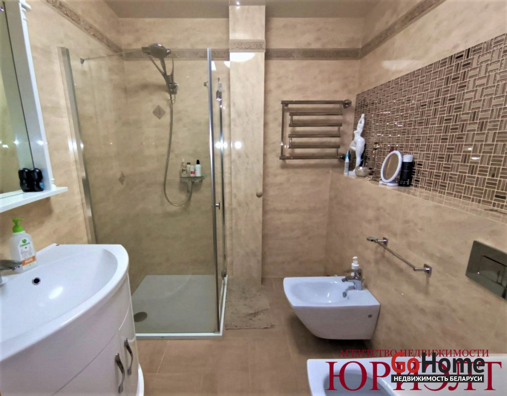 В с/у - пол с подогревом, уложена плитка Польского производства, душевая кабина - Чехия, биде и унитаз - Франция.