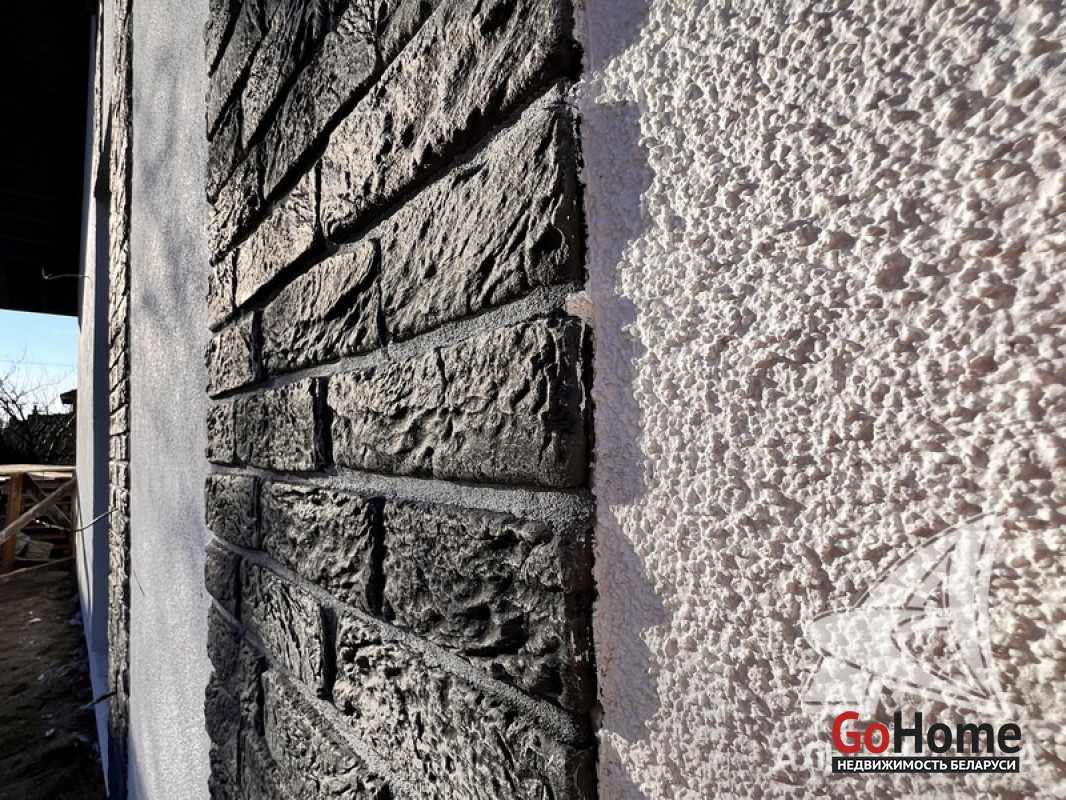 Стены: материал - газосиликатный блок; утепление - пенополистирол (пенопласт); отделка фасада - декоративная штукатурка. Кровля: металлочерепица. Фундамент: ленточный монолитный; материал - бетон; подушка - гравийная.