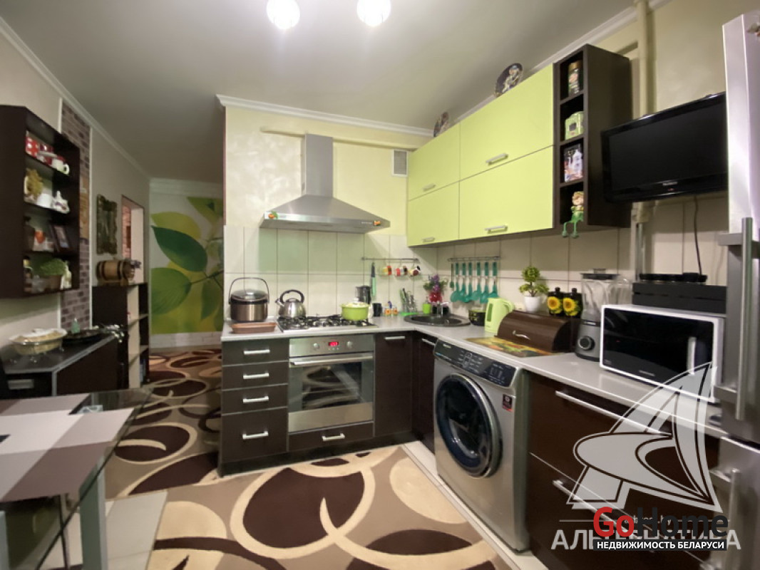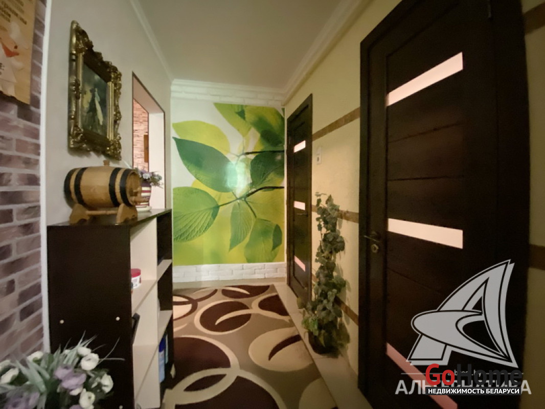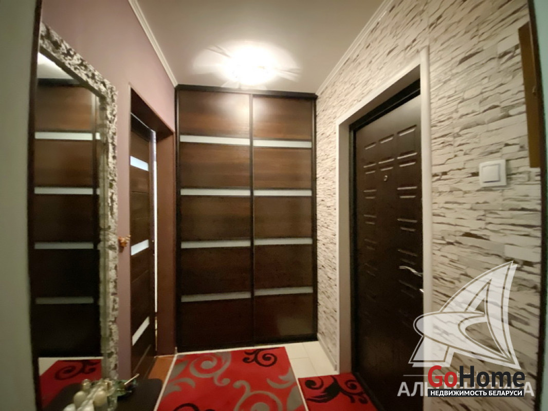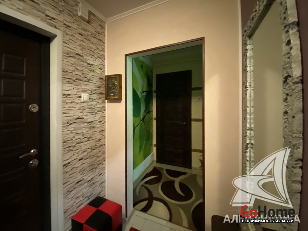 1-комнатная квартира, г. Кобрин, ул. Дружбы, 1992 г.п., 1 / 5 панель, 38,9 / 36,9 / 16,9 / 9,1, санузел раздельный, лоджия застеклена, стеклопакеты, межкомнатные двери - массив, входная дверь металлическая, потолки - снежка (2,50 м), полы - ламинат (в комнате), плитка (в кухне, в прихожей), в санузле современная плитка, заменена сантехника и полотенцесцшитель, заменены сантехнические трубы - пластик, душевая кабина, проведена новая электропроводка, телефон, домофон. Гардеробная, корпусная мебель (в комнатах), кухонный гарнитур, вытяжка, духовой шкаф, варочная панель, холодильник, телевизор (в кухне), стиральная машина, кухонный стол, два стула. Оборудован подвал под лоджией. Квартира с хорошим ремонтом. Все окна выходят во двор. Чистый подъезд. Высокий цоколь. Дом расположен в глубине двора. Лот - 250030