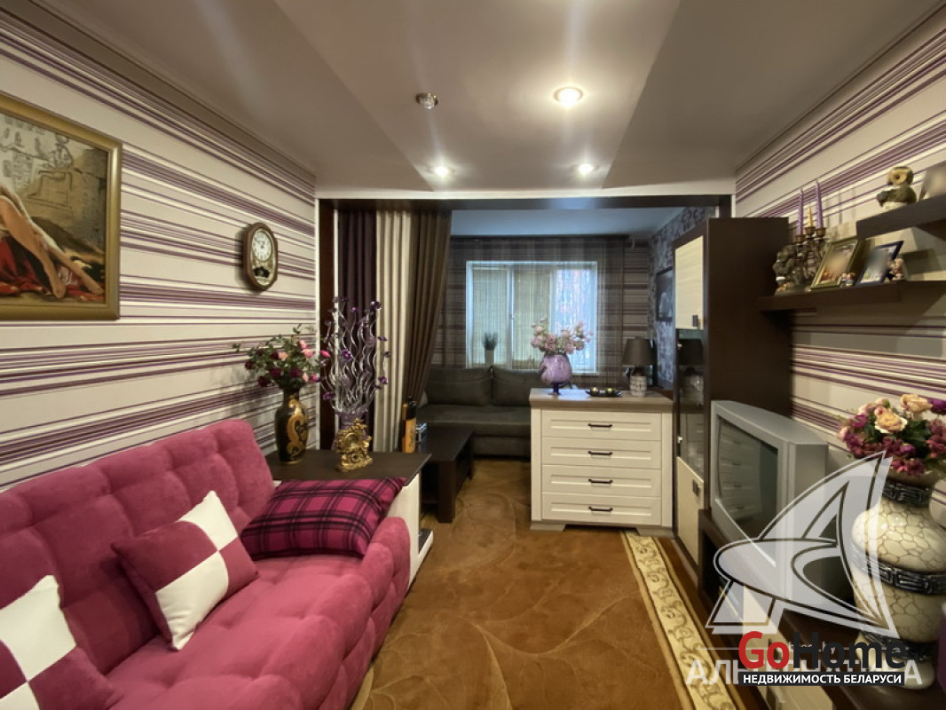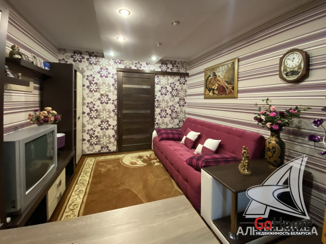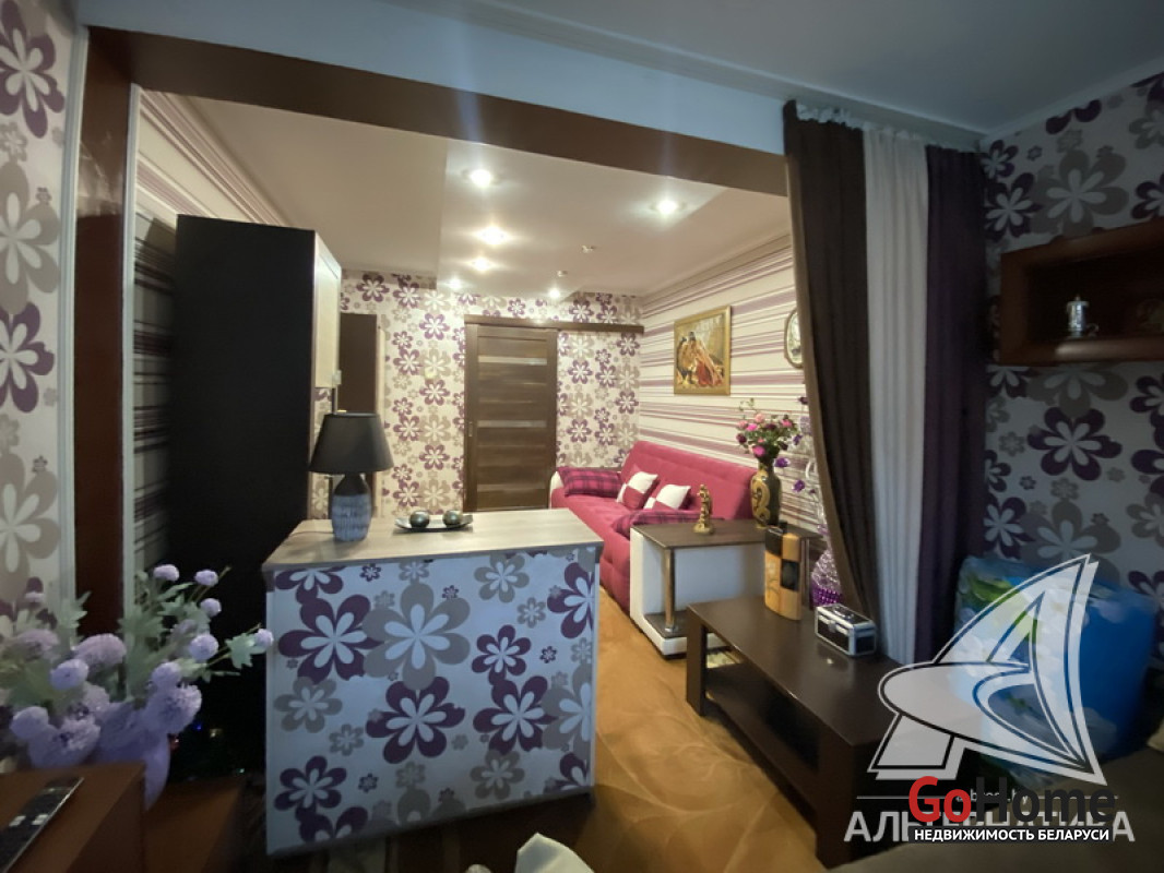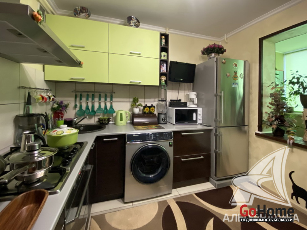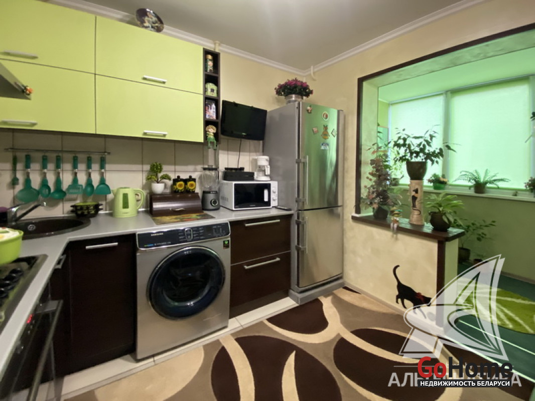 1-комнатная квартира, г. Кобрин, ул. Дружбы, 1992 г.п., 1 / 5 панель, 38,9 / 36,9 / 16,9 / 9,1, санузел раздельный, лоджия застеклена, стеклопакеты, межкомнатные двери - массив, входная дверь металлическая, потолки - снежка (2,50 м), полы - ламинат (в комнате), плитка (в кухне, в прихожей), в санузле современная плитка, заменена сантехника и полотенцесцшитель, заменены сантехнические трубы - пластик, душевая кабина, проведена новая электропроводка, телефон, домофон. Гардеробная, корпусная мебель (в комнатах), кухонный гарнитур, вытяжка, духовой шкаф, варочная панель, холодильник, телевизор (в кухне), стиральная машина, кухонный стол, два стула. Оборудован подвал под лоджией. Квартира с хорошим ремонтом. Все окна выходят во двор. Чистый подъезд. Высокий цоколь. Дом расположен в глубине двора. Лот - 250030