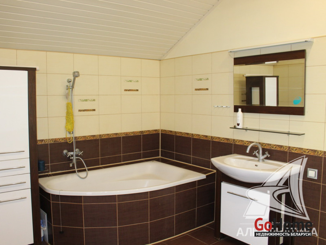 Жилой дом в Жабинковском р-не. 2007 г.п. 1 этаж, мансарда. Общ.СНБ - 153,8 кв.м, общ.- 153,8 кв.м, жил.- 33,4 кв.м, кух.- 13,9 кв.м. 4 комнаты, высота потолка - 2,80 м.
