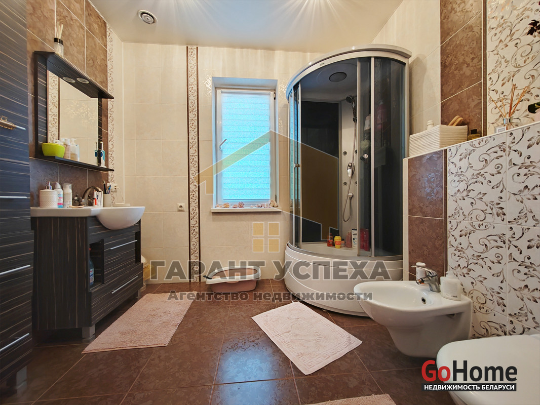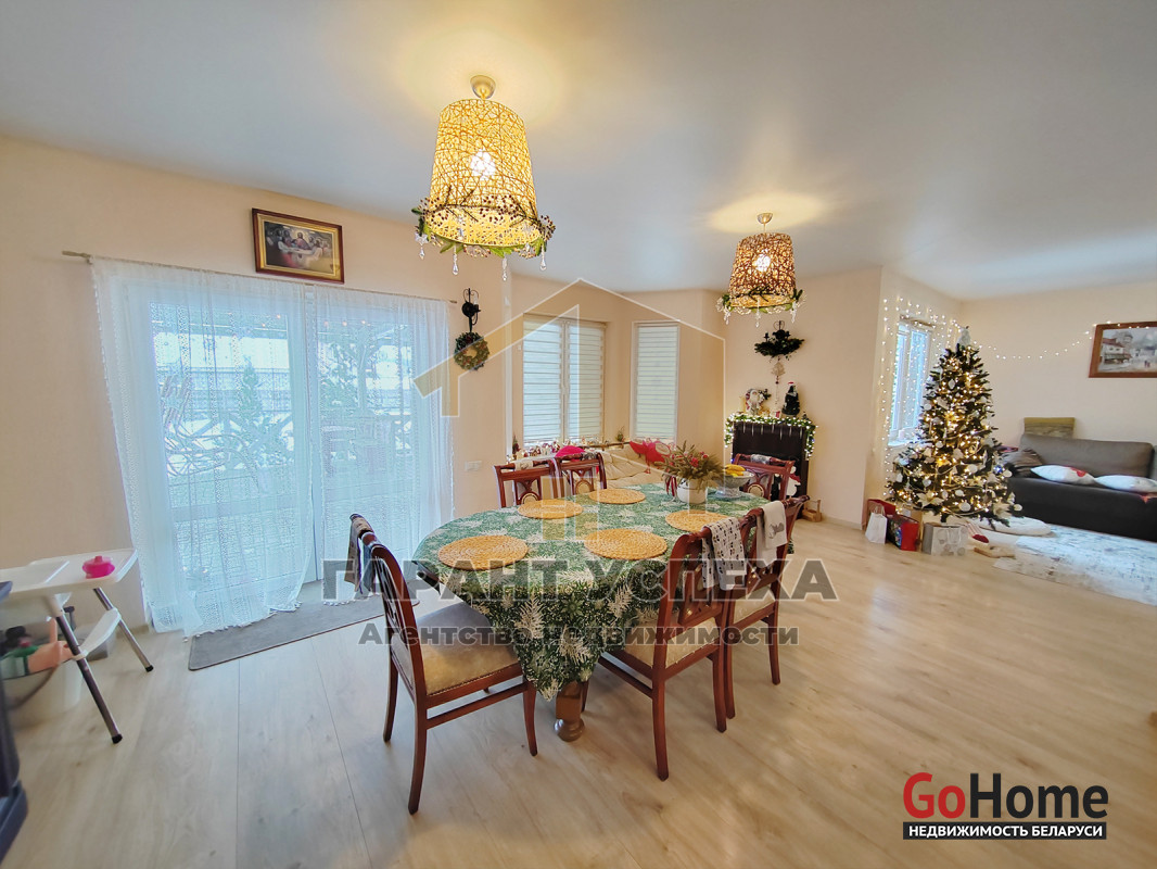 В доме сделан современный ремонт: на полы, в зависимости от помещений, уложена керамическая плитка и ламинат, в кухне-столовой, санузлах и прихожей смонтированы тёплые полы, на стены нанесена декоративная штукатурка, а комнаты оклеены обоями, натяжные потолки украшены декоративными светильниками. Комфортности и удобству проживания способствуют размещённые по дому проходные выключатели.