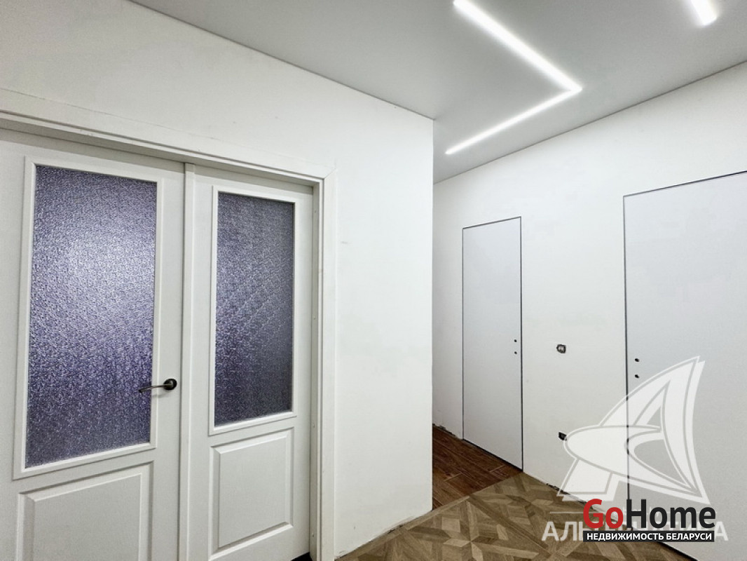 1-комнатная квартира, г. Брест, ул. Лейтенанта Рябцева, 2022 г.п., 5 / 11 панель, 45,1 / 42,3 / 17,2 / 11,0, санузел раздельный, лоджия застеклена, стеклопакеты, межкомнатные двери скрытого монтажа - МДФ, входная дверь металлическая, натяжные потолки (2,6 м), полы - ламинат и плитка (в прихожей, в кухне), стены ошпатлеваны под обои, в санузле современная плитка, акриловая ванна, инсталляция, домофон. В квартире частично произведен ремонт. Чистый подъезд. Один грузопассажирский лифт. Во дворе игровая детская площадка, парковка для автомобилей. Лот - 250095