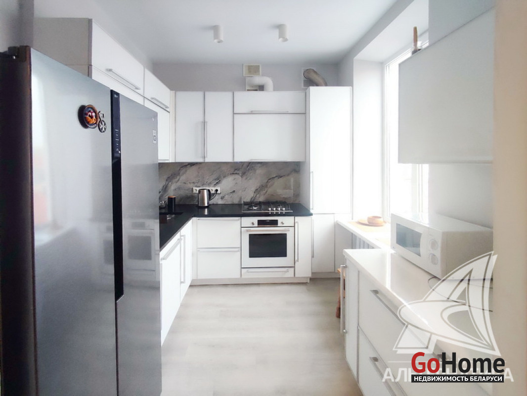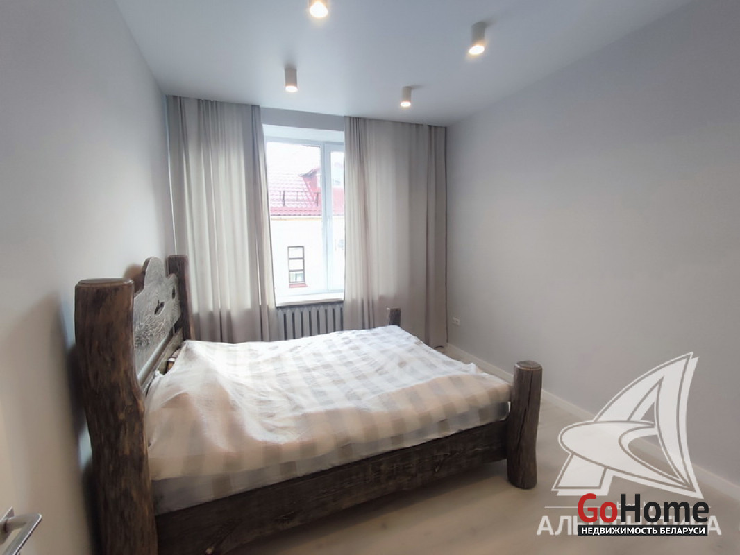 3-комнатная квартира, г. Брест, ул. Советская, 1928 г.п., 3 / 3 кирпич, 75,6 / 75,6 / 54,5 / 7,6, санузел совмещенный, стеклопакеты, межкомнатные двери - МДФ, входная дверь металлическая, натяжные потолки (сатин) с разноплановой системой освещения, полы - ламинат и линолеум (в кухне) - положены на доску, на стенах декоративная окраска, в санузле современная плитка, заменена сантехника, заменен полотенцесушитель, заменены сантехнические трубы, душевая кабина, инсталляция, газовая колонка в кухне, кондиционер, новый электросчетчик, телефон, домофон. Кухонный гарнитур, варочная поверхность, духовой шкаф, вытяжка, посудомоечная машина, холодильник, стол в гостиной и четыре стула, два кожаных дивана, встроенные шкафы, кожаное кресло, кровать, две гардеробные комнаты. Квартира с хорошим ремонтом. Квартира расположена на две стороны. Чистый подъезд. Двускатная крыша. Лот - 250116