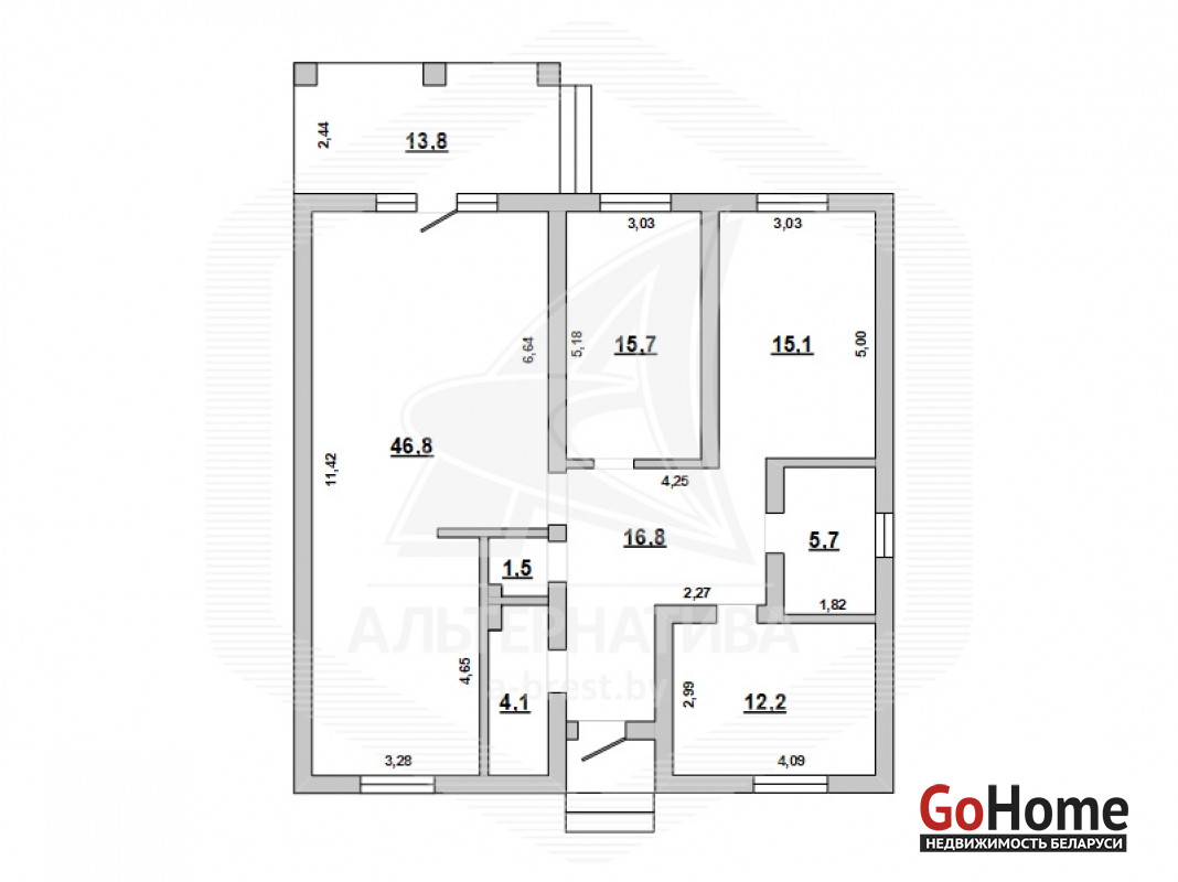 Дачный дом жилого типа в Брестском р-не. 2021 г.п. 1 этаж. Общ. - 122,0 кв.м, 3 комнаты.
