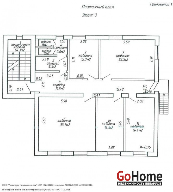 производственно-складских помещений (подвальный этаж, 1-й этаж, 2-й этаж); административных помещений (3-й, 4-й этажи). Производственно-складские помещения: