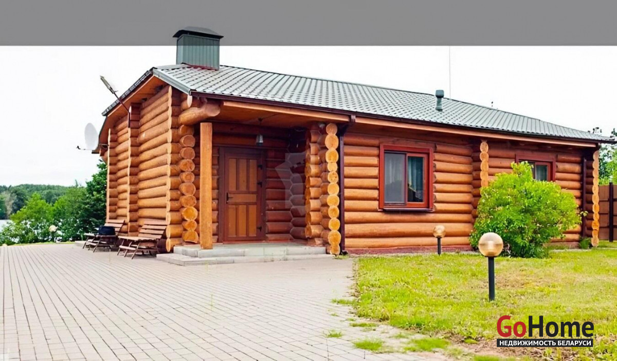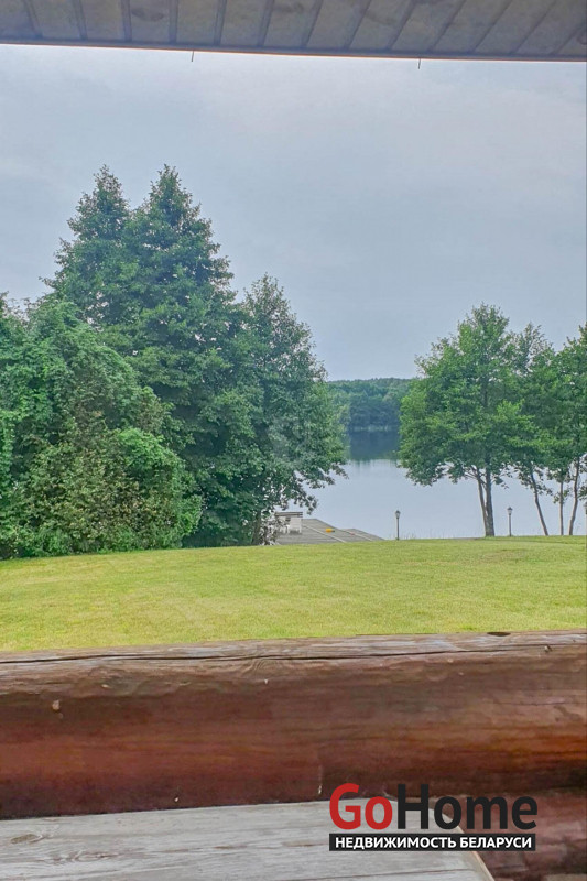 Гараж и баня расположены отдельно от дома. Есть терраса, с которой открывается потрясающий вид на озеро и лес.