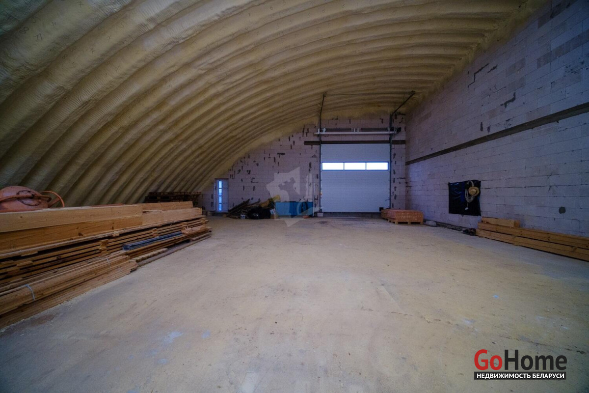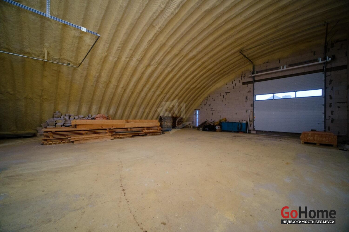 Арочный ангар утеплен ППУ Стены из газосиликатных блоков Промышленные ворота с двух сторон, удобные для грузового транспорта Качественные стеклопакеты Возможность обустройства рампы Жилая зона / зона отдыха / кафе