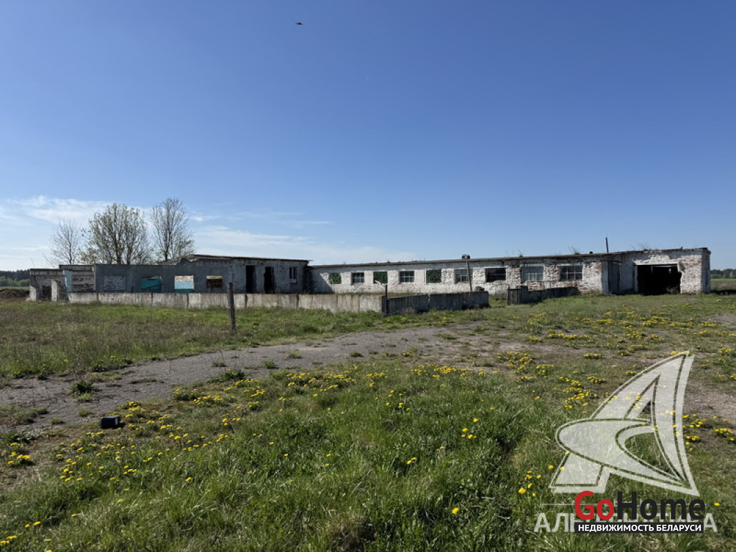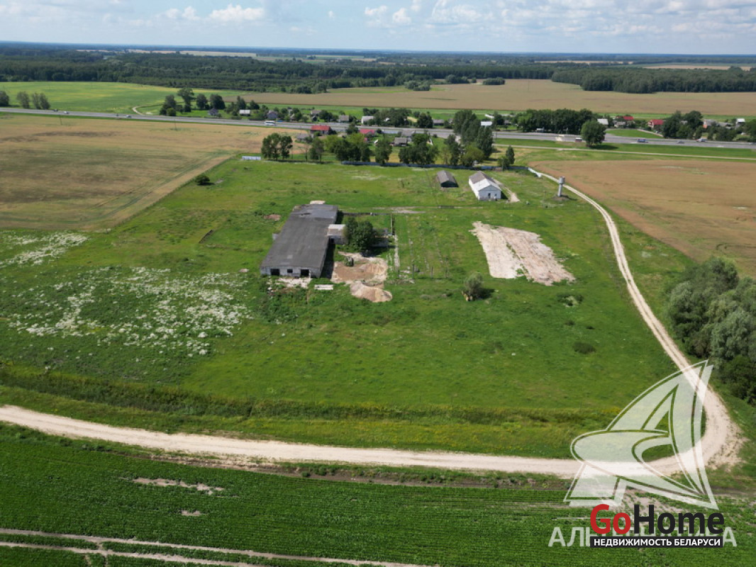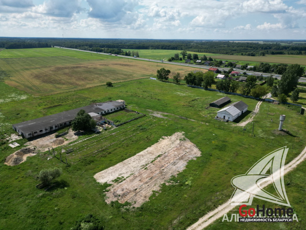 Земельный участок площадью 5,0619 га с расположенными на нем зданиями общей площадью 1838,3 кв.м в собственность на трассе M1/Е30 Брест - Москва (46 - й км, район д. Перки Кобринского района Брестской области). На земельном участке расположены 3 (три) капитальных строения: 1) Здание склада общей площадью 291,1 кв.м. 2) Здание специализированное животноводства (наименование - здание телятника) общей площадью 175,4 кв.м. 3) Здание специализированное животноводства (наименование - здание коровника) общей площадью 1371,8 кв.м. Земельный участок предоставлен собственнику в долгосрочную аренду (до 14.03.2062 г.) для обслуживания зданий. Рассматриваются все варианты. Лот - 242734