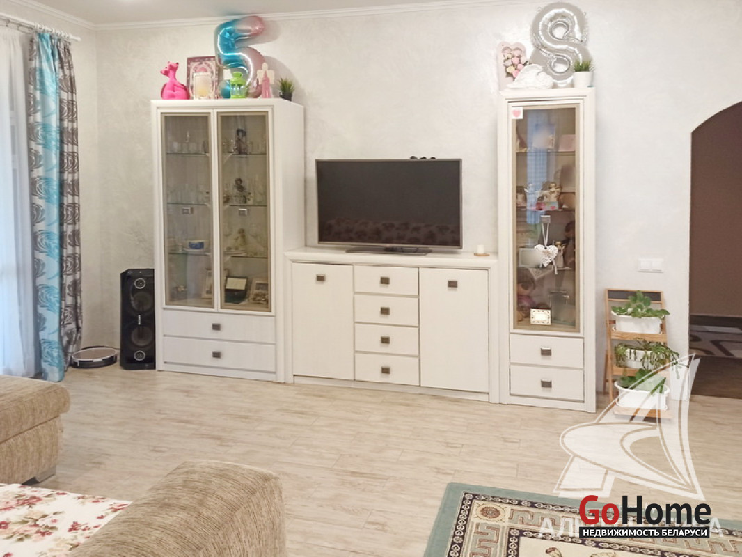 Коммуникации: отопление - газовый котел, газ - централизованный (в доме), водоснабжение - скважина и гидрофор, электричество - централизованное, канализация - автономная.