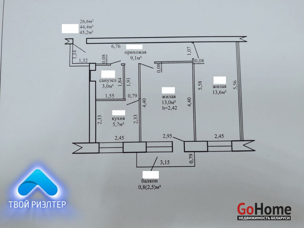 Предлагаем к продаже двухкомнатную квартиру, расположенную по ул.Мира, 7 в г.Речица Речицкого района Гомельской области.
