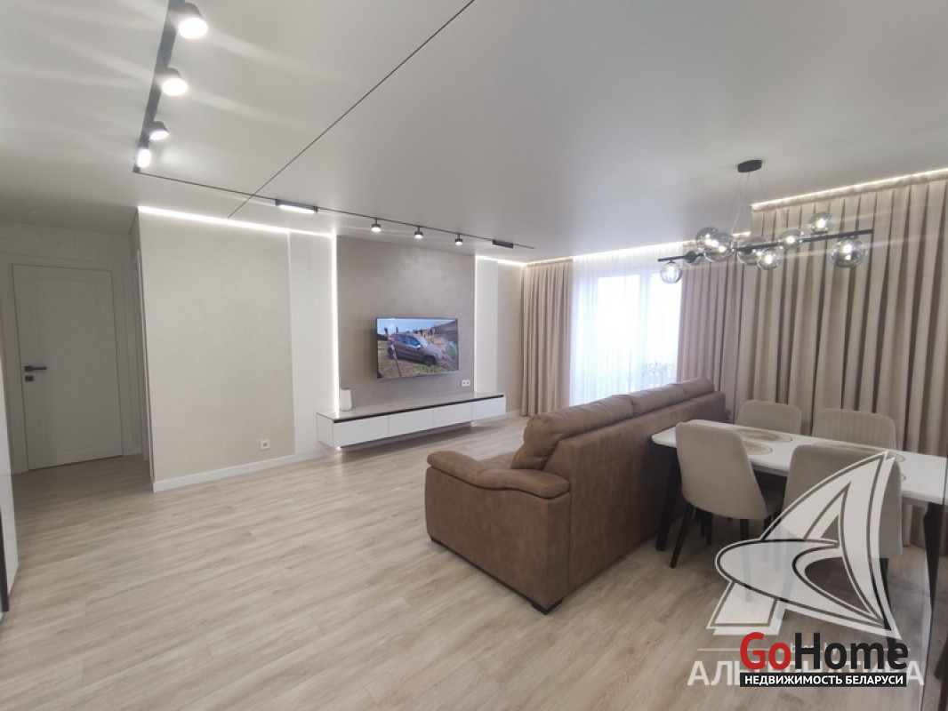 3-комнатная квартира, г. Брест, ул. Гоголя, 2023 г.п., 7 / 9 кирпич, 84,9 / 78,1 / 71,8 / -, санузел раздельный, две лоджии застеклены, стеклопакеты, входная дверь металлическая, натяжные потолки с разноплановой системой освещения, полы - ламинат и плитка, есть подогрев пола (в кухне, в ванной, в детской, в ванной, на лоджии), стены оклеены обоями и декоративная окраска, в санузле современная плитка, заменена сантехника, заменен полотенцесушитель, заменены сантехнические трубы, инсталяция, установлен бойлер (в санузле), проведена новая электропроводка, домофон, система видеонаблюдения. Кухонный гарнитур, варочная поверхность, вытяжка, духовой шкаф, встроенная микроволновая печт, посудомоечная машине, холодильник, стиральная машина, сушильная машина, встроенный шкаф-купе (в прихожей), прихожая, диван (в кухне), обеденная группа (в кухне), телевизоры, кровати и корпусная мебель (в детской), кровать (в спальне). Остается вся мебель и бытовая техника Bosch. Квартира с индивидуальными дизайнерскими решениями. Квартира расположена на две стороны. Кухня и спальня во двор. Чистый подъезд. Безбарьерный вход. Один грузопассажирский лифт. Во дворе парковка для автомобилей. Лот - 250185