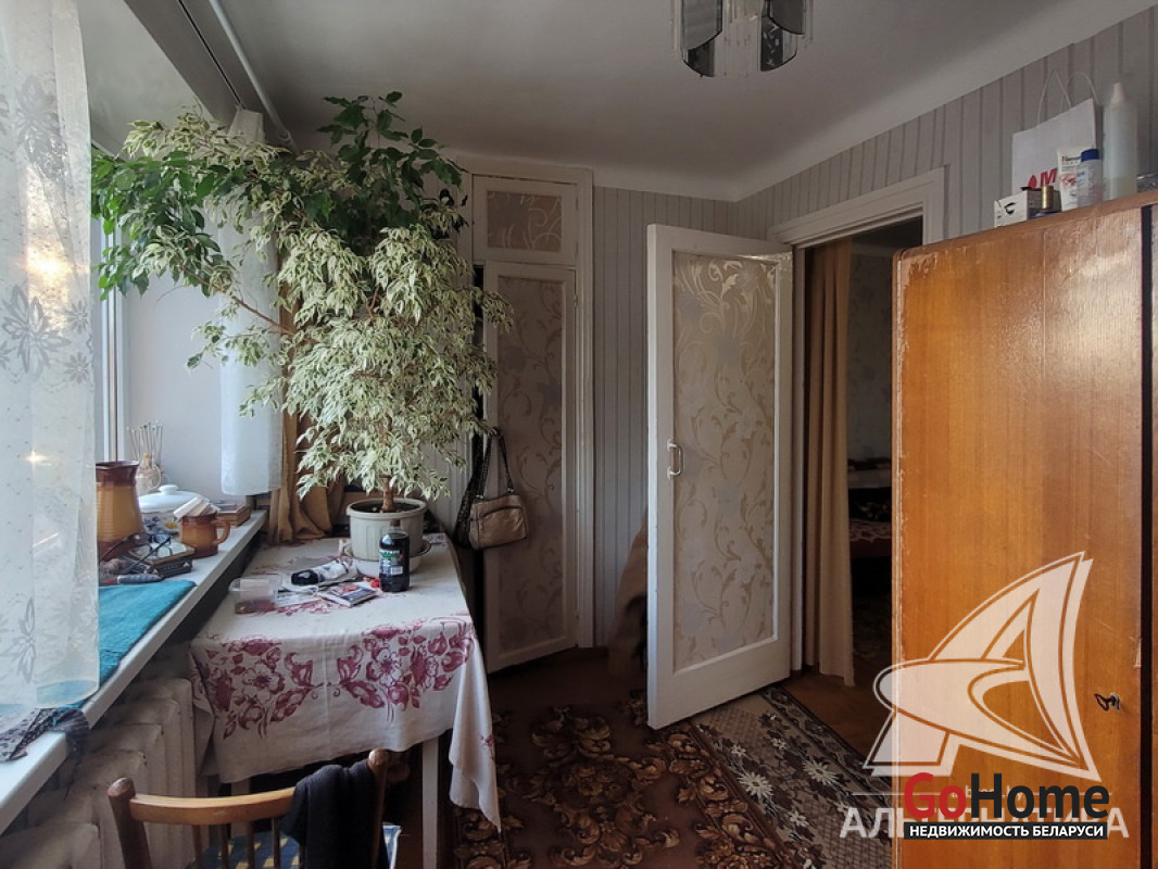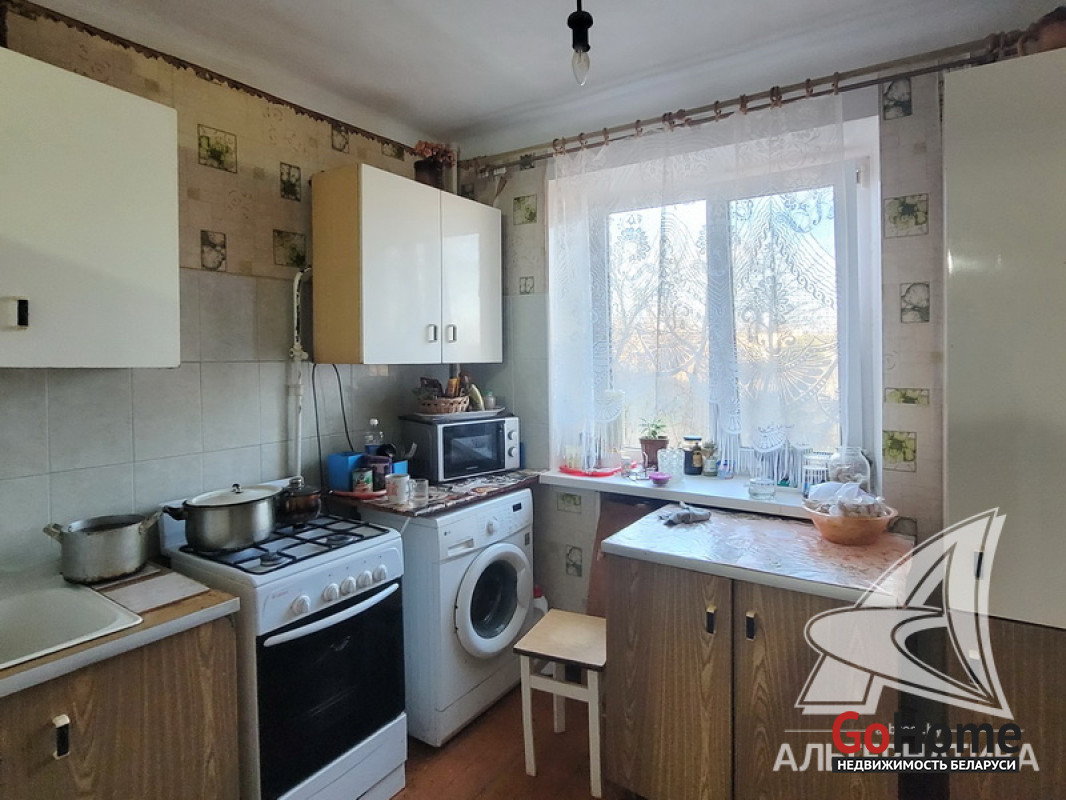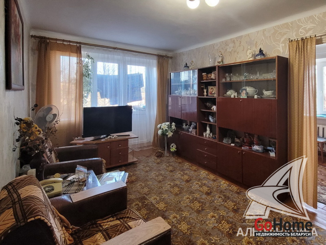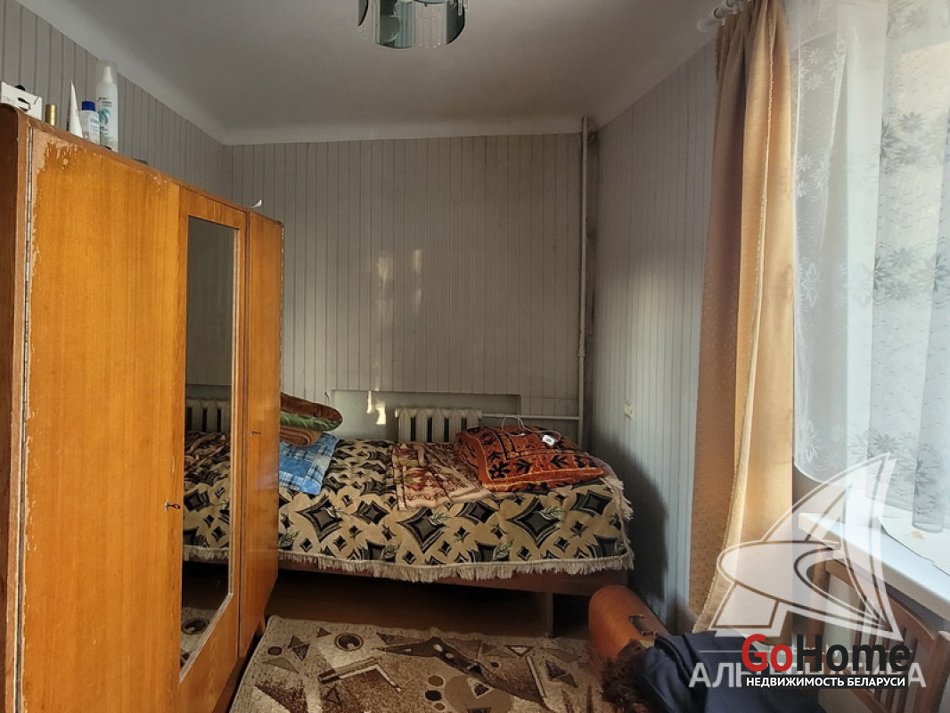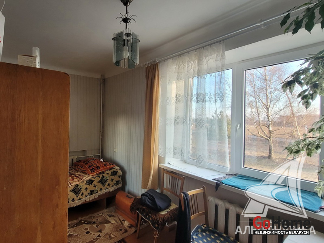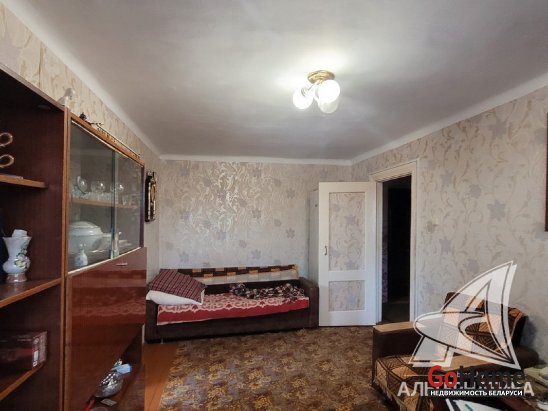 2-комнатная квартира, аг. Пелище, ул. Первомайская, 1965 г.п., 2 / 3 кирпич, 43,6 / 43,0 / 26,8, санузел совмещенный, балкон, стеклопакеты, потолки - снежка, полы - доска крашеная, стены оклеены обоями, телефон. Кухонный гарнитур, стенка, кровати, мягкий уголок. Квартира в жилом состоянии. Лот - 250178