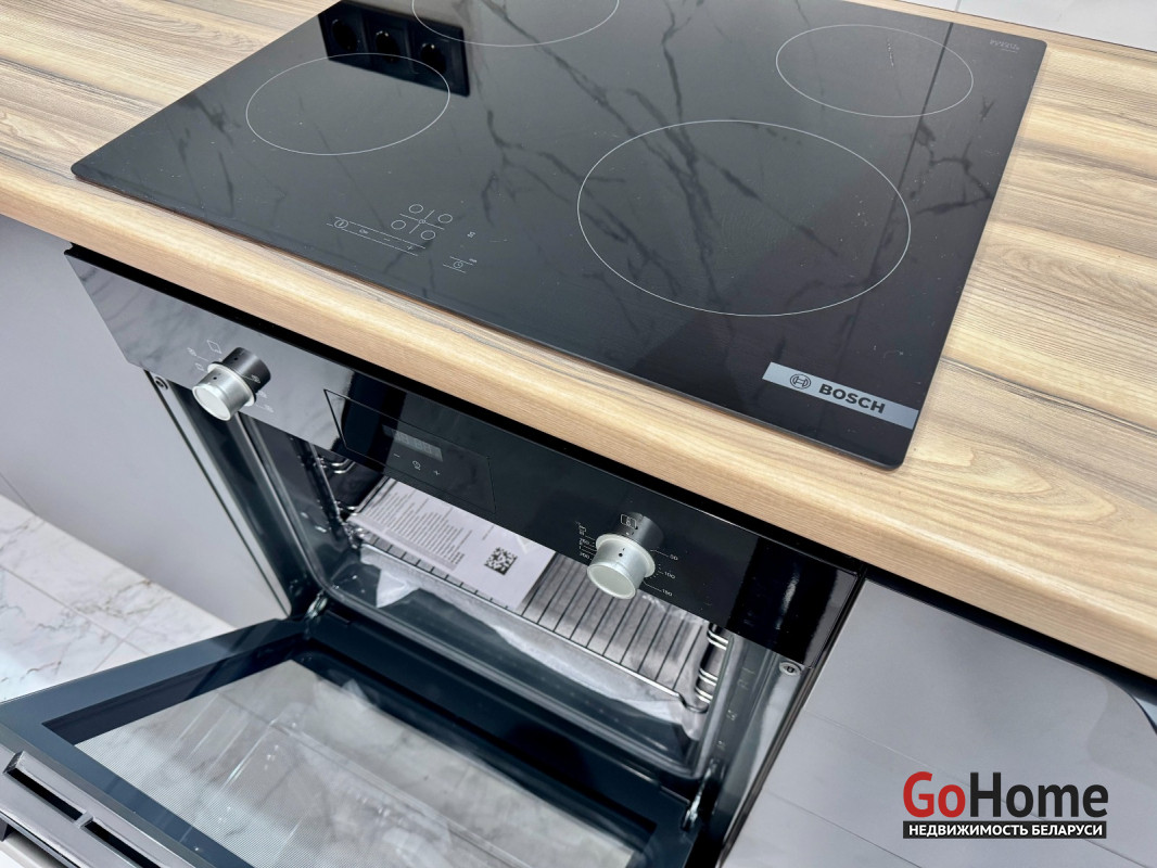 Бытовая техника премиум-класса: варочная панель (Bosch), духовой шкаф (Bosch), посудомоечная машина (Bosch), холодильник (LG), стиральная машина (Haier). Вся техника абсолютно новая.