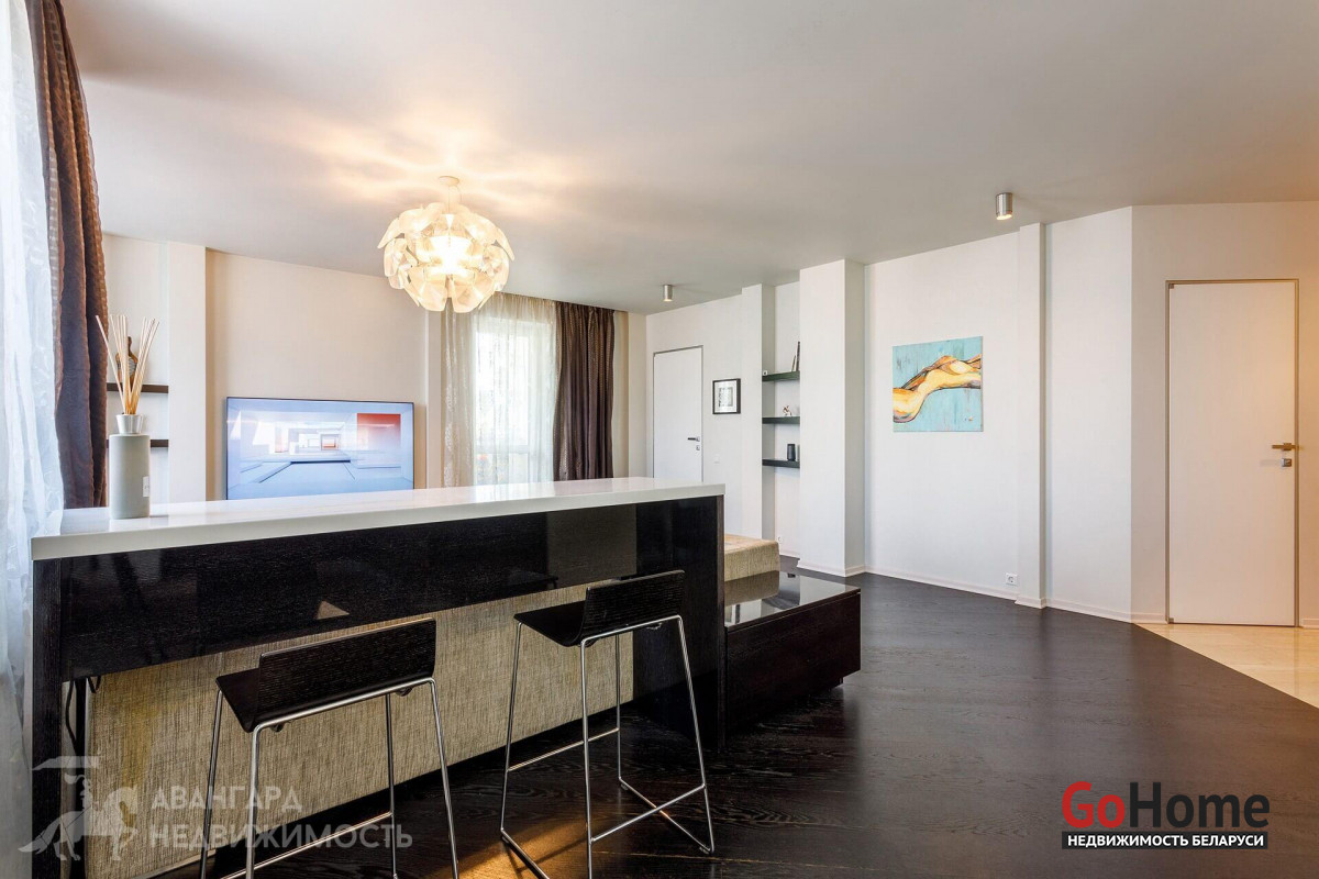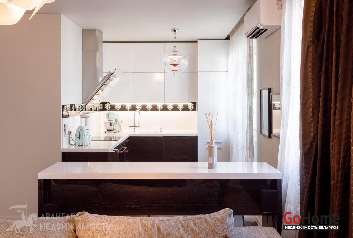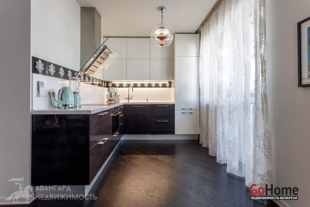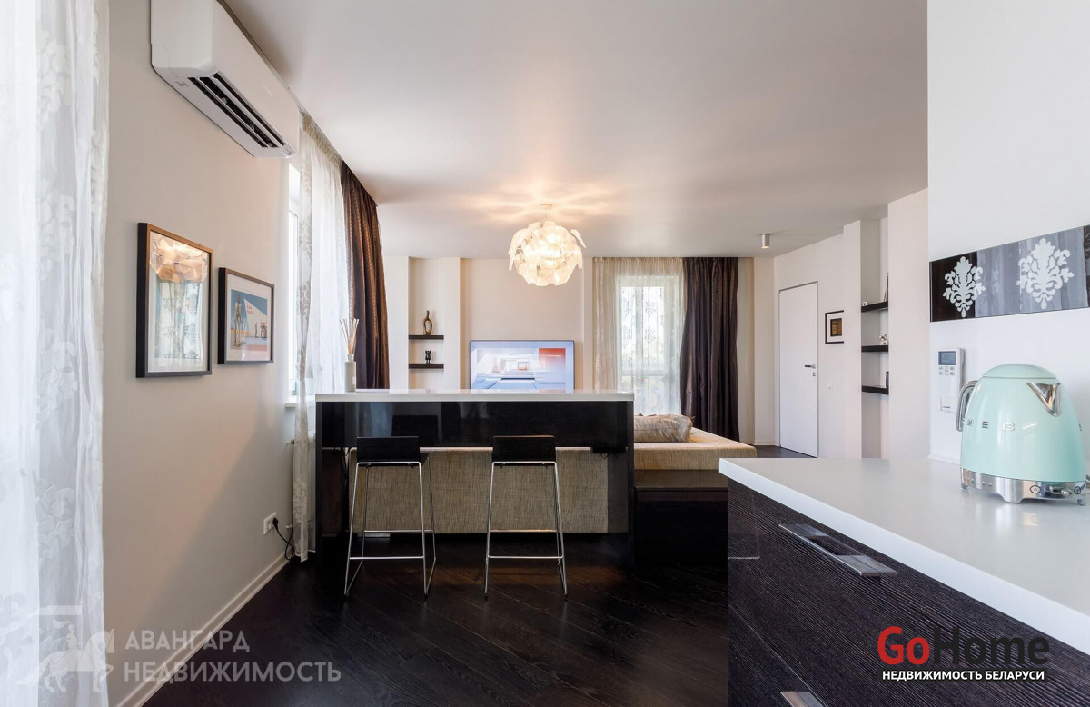 Квартира с отличным, дорогим, дизайнерским ремонтом и полностью готова к проживанию. Кухня со встроенной импортной техникой ведущих мировых производителей (посудомоечная машина «Asco», холодильник «Liebherr», вытяжка «Miele», индукционная панель «Aeg» и т.д.), кондиционер (новая сплит-система, которая охлаждает всю квартиру за 3 минуты). Вся техника на гарантии. Кухня отделана шпоном, все механизмы «Blum», столешница из искусственного камня с литой раковиной, система фильтрации воды и измельчитель пищевых отходов.