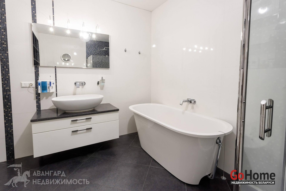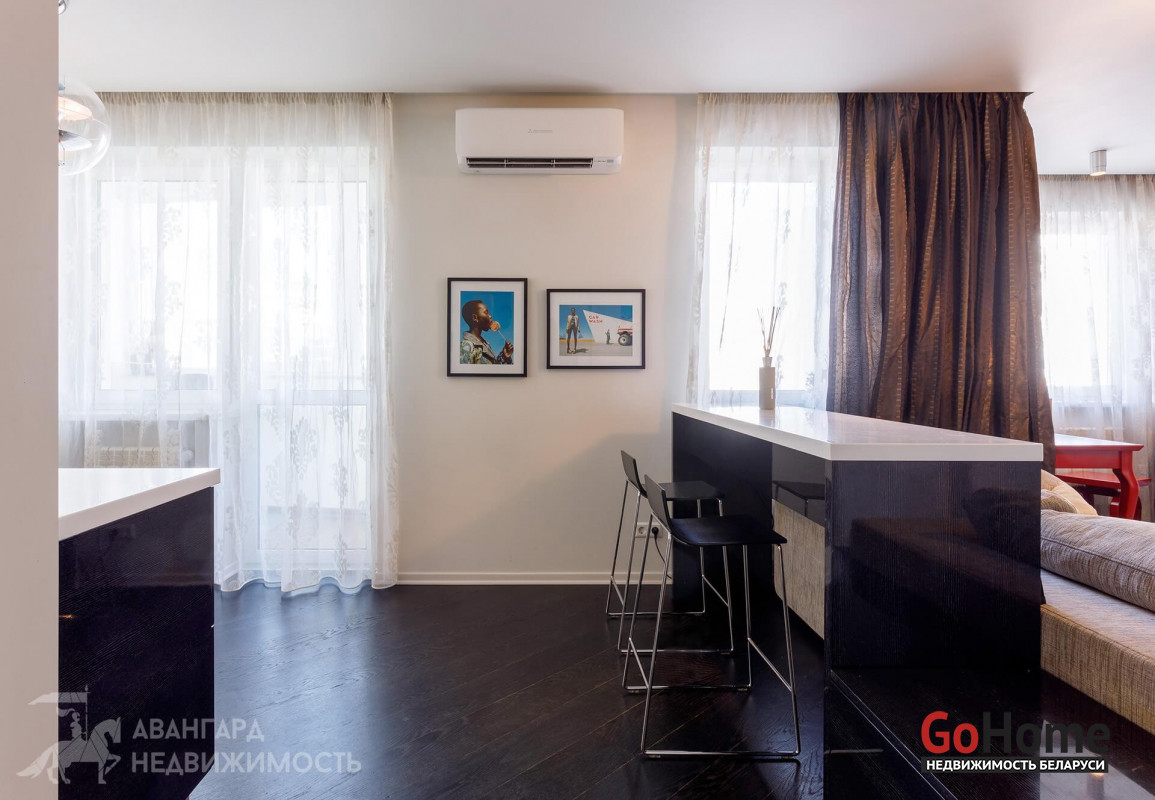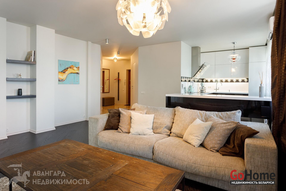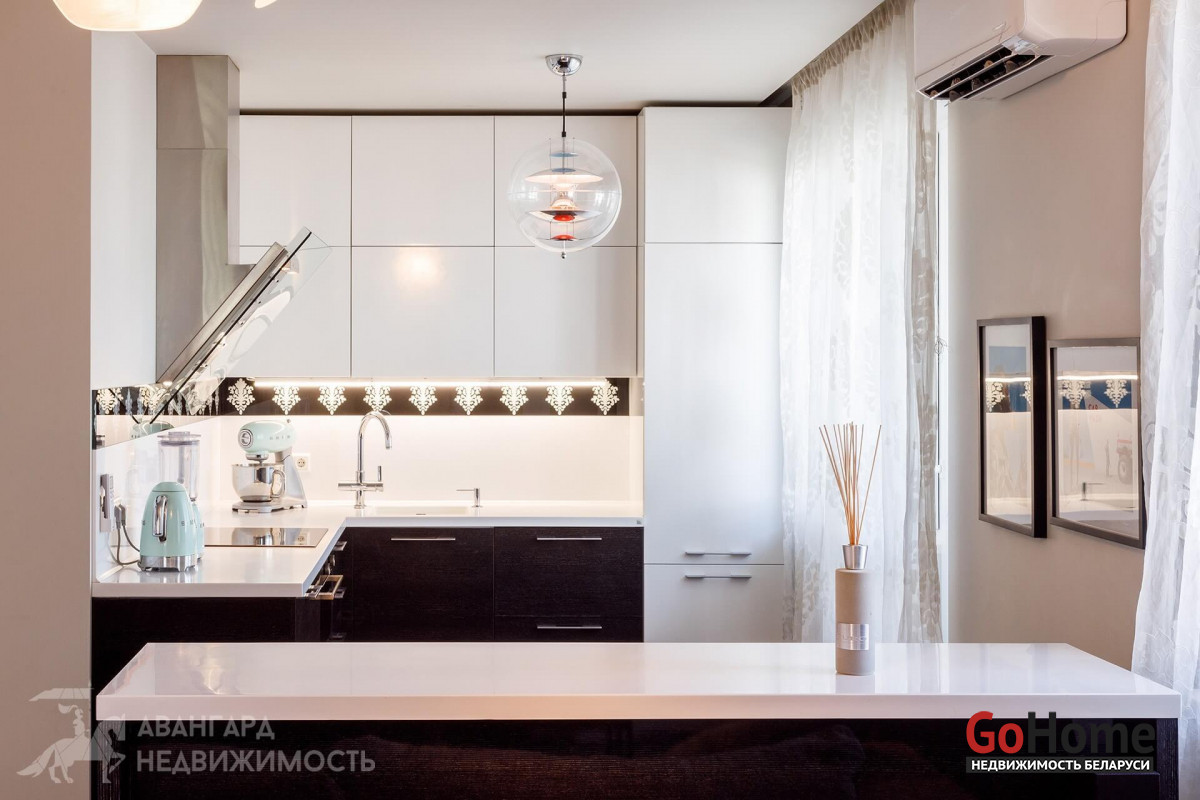 Квартира с отличным, дорогим, дизайнерским ремонтом и полностью готова к проживанию. Кухня со встроенной импортной техникой ведущих мировых производителей (посудомоечная машина «Asco», холодильник «Liebherr», вытяжка «Miele», индукционная панель «Aeg» и т.д.), кондиционер (новая сплит-система, которая охлаждает всю квартиру за 3 минуты). Вся техника на гарантии. Кухня отделана шпоном, все механизмы «Blum», столешница из искусственного камня с литой раковиной, система фильтрации воды и измельчитель пищевых отходов.