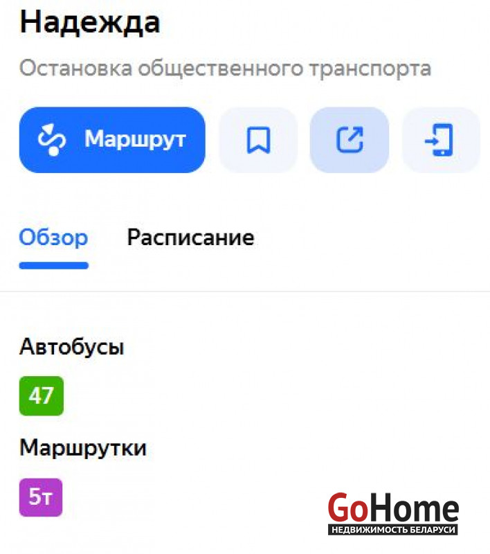 Транспортное сообщение: о.п. «Надежда» автобус 47, а также маршрутное такси 5.