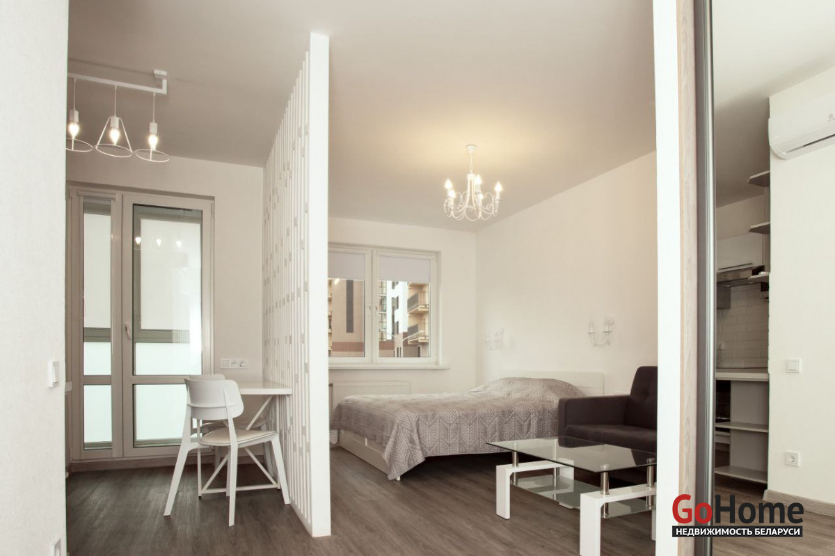 Квартира-студия в шаговой доступности от метро Грушевка. Дзержинского 34. Дизайнерский ремонт. Бытовая техника (кондиционер, холодильник, варочная панель, духовой шкаф, микроволновая печь, стиральная машина, телевизор, пылесос, эл.чайник) WiFi. Рядом с домом есть крытый паркинг. Аренда + коммуналка. На длительный срок. Граждане всех стран. Официальный договор.