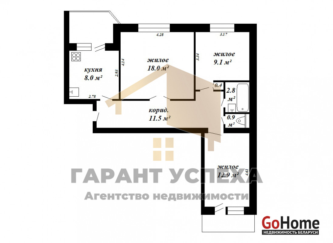 ЧУП «Гарант успеха», УНП 290472700, лицензия №02240/137 от 20.10.2006 г., договор на оказание риэлтерских услуг №19/2 от 05.02.2025 г.