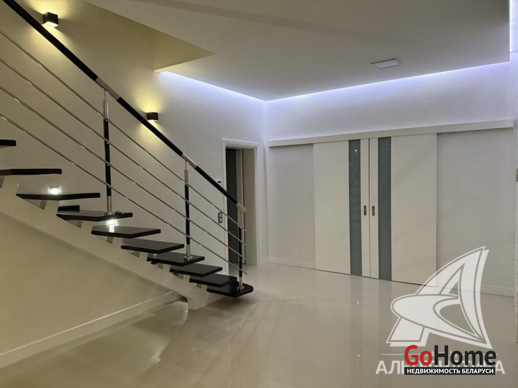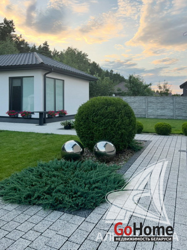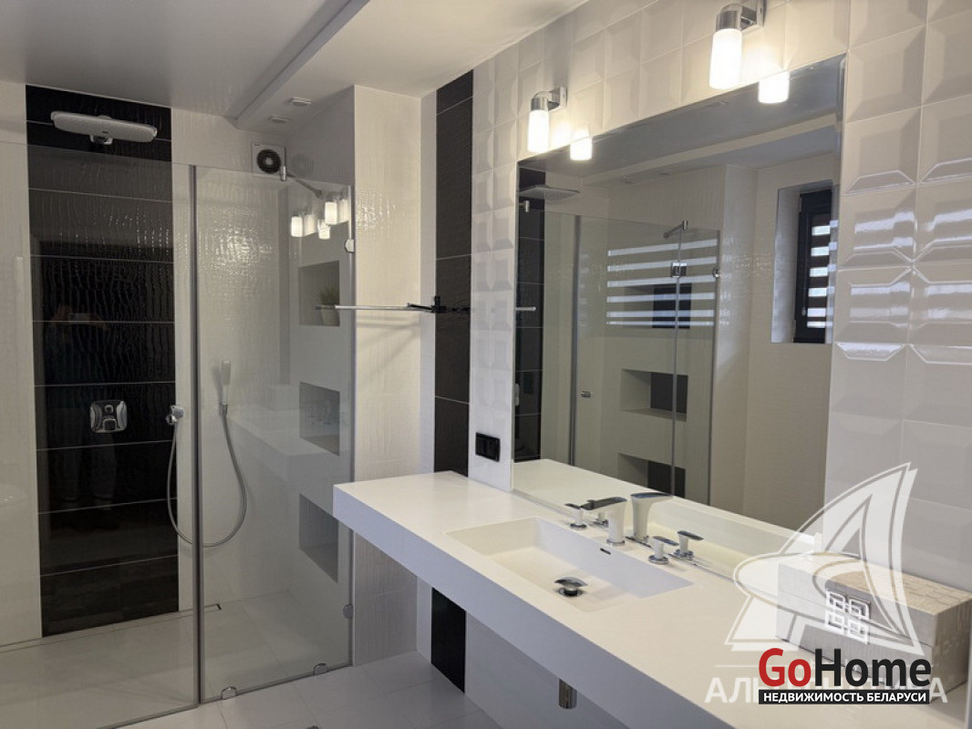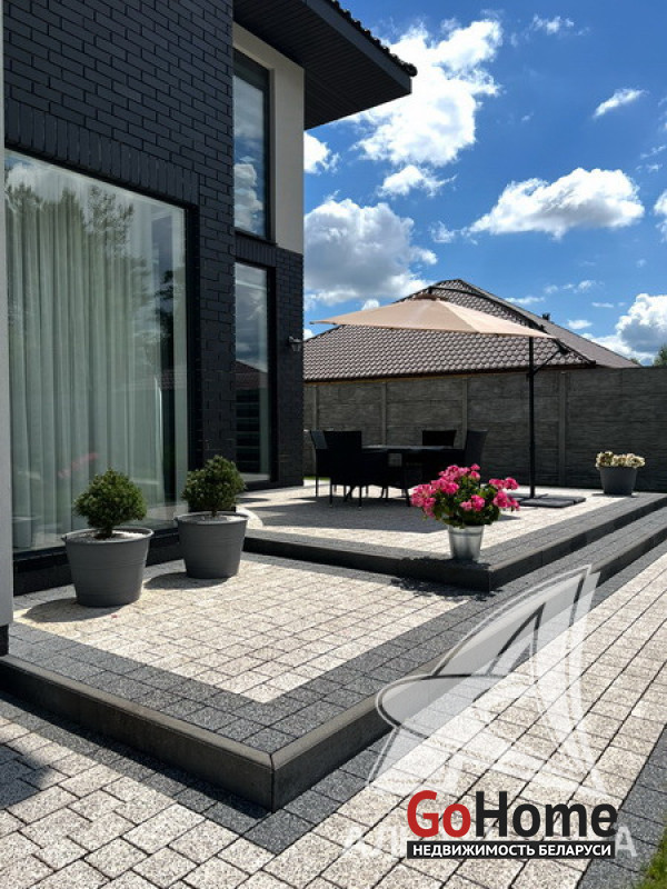 Жилой дом в престижном районе г.Бреста. 2013 г.п. 2 этажа. Общ. СНБ - 329,0 кв.м, общ. - 277,5 кв.м., жил. - 143,9 кв.м, кух.- 25,6 кв.м. 6 комнат. В доме сделан эксклюзивный дизайнерский ремонт, продумана инженерия, второй свет. Все стройматериалы импортного производства, в том числе плитка (Италия, Испания), сантехника Hansgrohe, обои, паркетная доска, система освещения. Межкомнатные двери, лестница, полы из натурального дерева. Смонтирована разводка под систему кондиционирования, охранная сигнализация, видеодомофон. На участке находится гостевой домик под чистовую отделку общей площадью 75,0 кв.м (две комнаты и с/у) и встроенный гараж на два авто с автоматическими воротами на пульте управления. Стены: материал - железобетон; отделка фасада - клинкерный кирпич Roben, оштукатурен. Кровля: натуральная черепица Roben. Фундамент: ленточный монолитный; материал - бетон. Коммуникации: электричество, отопление - газовый котел, водоснабжение и канализация - централизованные. Участок благоустроен, частично выполнен ландшафтный дизайн. Есть прямой выход в сосновую рощу. Участок - 0,1073 га. Лот - 171359