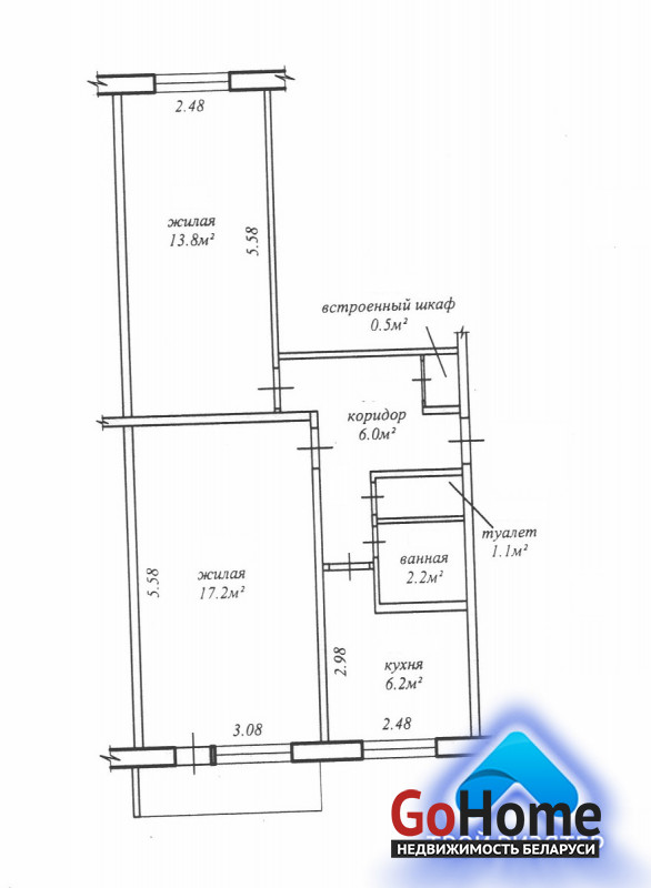- жилое состояние квартиры, без ремонта по современным стандартам;