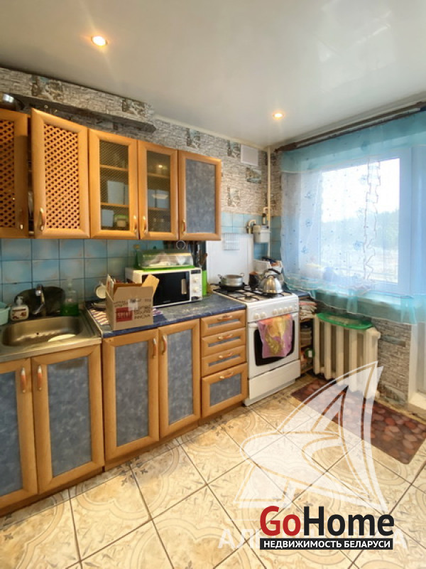 2-комнатная квартира, аг. Каменюки, пер. Красноармейский, 1982 г.п., 2 / 3 панель, 47,4 / 46,1 / 26,9 / -, санузел раздельный, два балкона, стеклопакеты, входная дверь металлическая, потолки оклеены касетонами, полы - ДСП (положен на доску) и плитка (в кухне), душевая кабина, телефон. Кухонный гарнитур. Квартира в жилом состоянии. Окна выходят на зеленую зону. Чистый подъезд. Лот - 250282