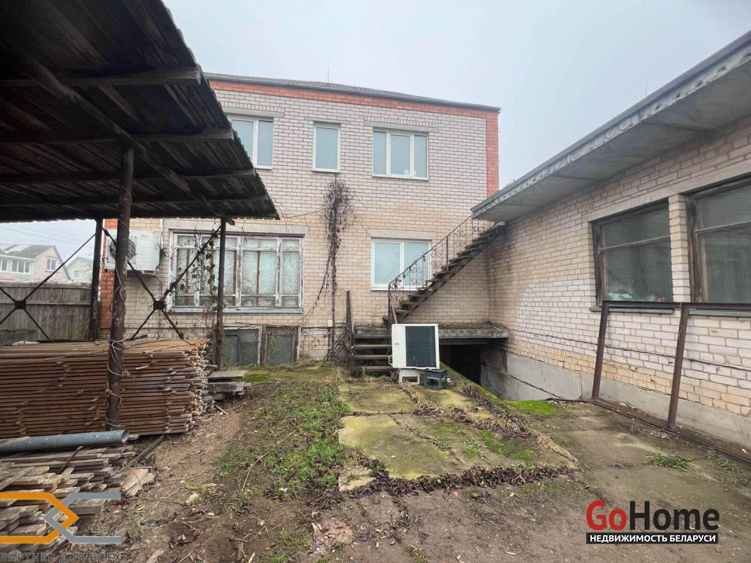 1 этаж: магазин общей площадью 65 м2. 2 этаж: административное помещение с отдельным входом, четырьмя отдельными кабинетами и санузлом. К зданию пристроены два склада общей площадью 195 м2. Одно помещение с ямой для ремонта автомобилей. В подвале площадью 161 м2 расположена топочная, мастерская, санузел и склад. В помещении уже проведены все необходимые коммуникации: электричество, отопление, водоснабжение, канализация, интернет и пожарная сигнализация. Здание находится на пересечении улиц, что дает возможность подъезда с трех сторон.