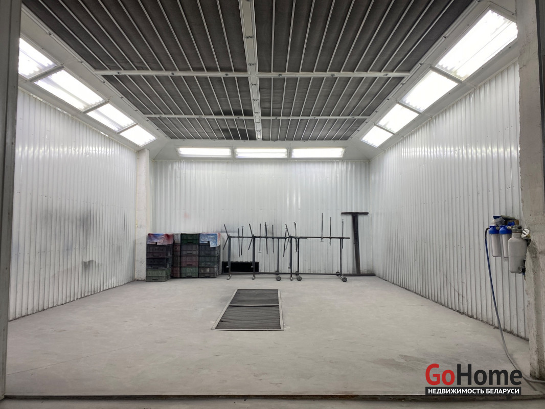 4. Малярный бокс с большой камерой размером: длина 7,40м, ширина 5,20м, высота 3,10м., фильтра потолочный на подачу воздуха и напольный на вытяжку имеется комплект новых, фильтра на подготовку воздуха к пистолету.