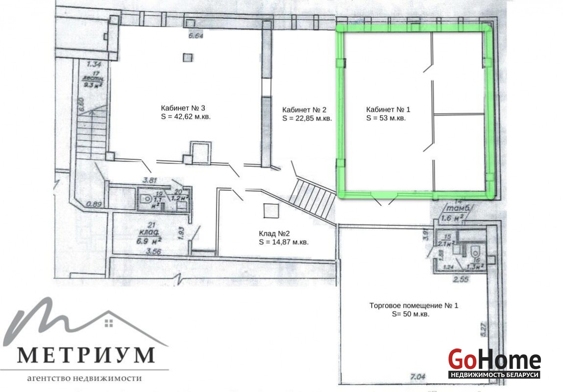 Помещение площадью 53 квадратных метра, с удобным расположением.
