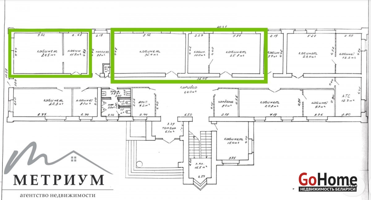 Помещения площадью от 30,5 кв.м (35,2 кв.м; 36,4 кв.м) располагаются на 1 этаже административного здания по адресу ул. Полиграфическая 31. и состоят из двух кабинетов, окна выходят во двор жилого района. Каждый кабинет обустроен отдельной входной дверью.