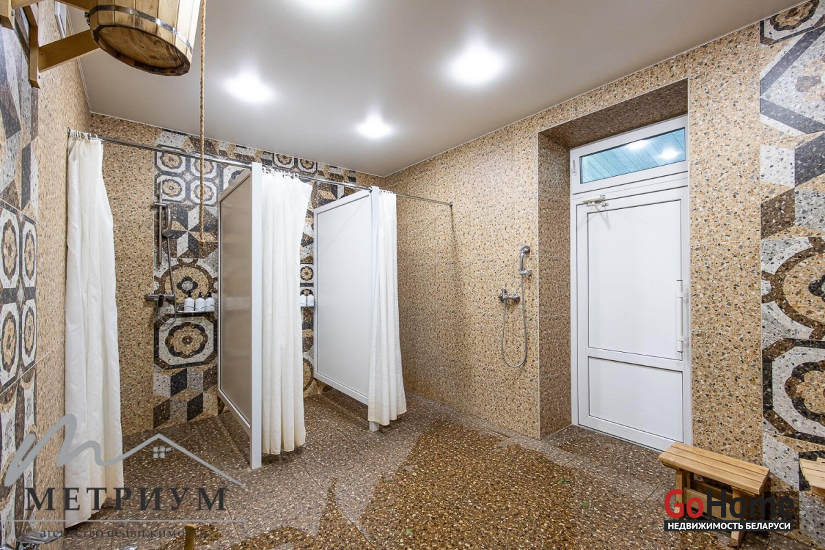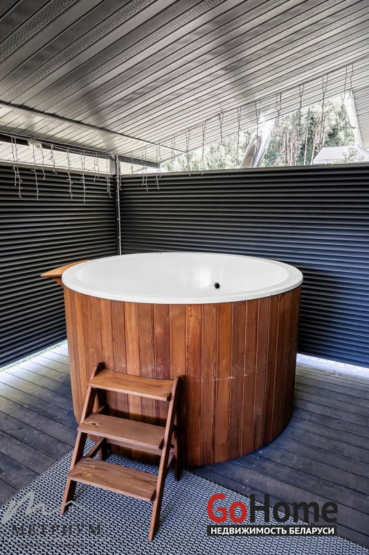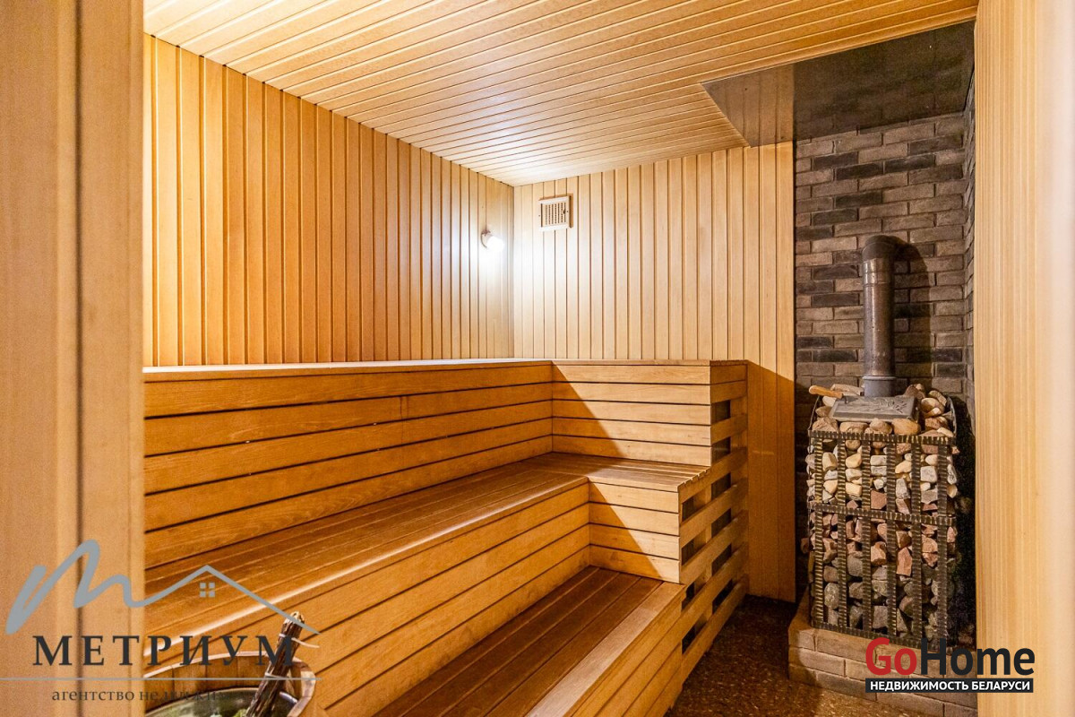 Банный комплекс вмещает в себя просторную парилку, комнату отдыха с камином, раздевалку, душевую зону. Изюминкой данного места является купель на открытом воздухе. Но её можно использовать не только для тонизации, но и для релаксации, ведь она с подогревом. Горячая купель-джакузи дополнительно оснащена хромотерапией. Также имеются все необходимые банные принадлежности: простыни, полотенца, тапочки, аромамасла, веники.
